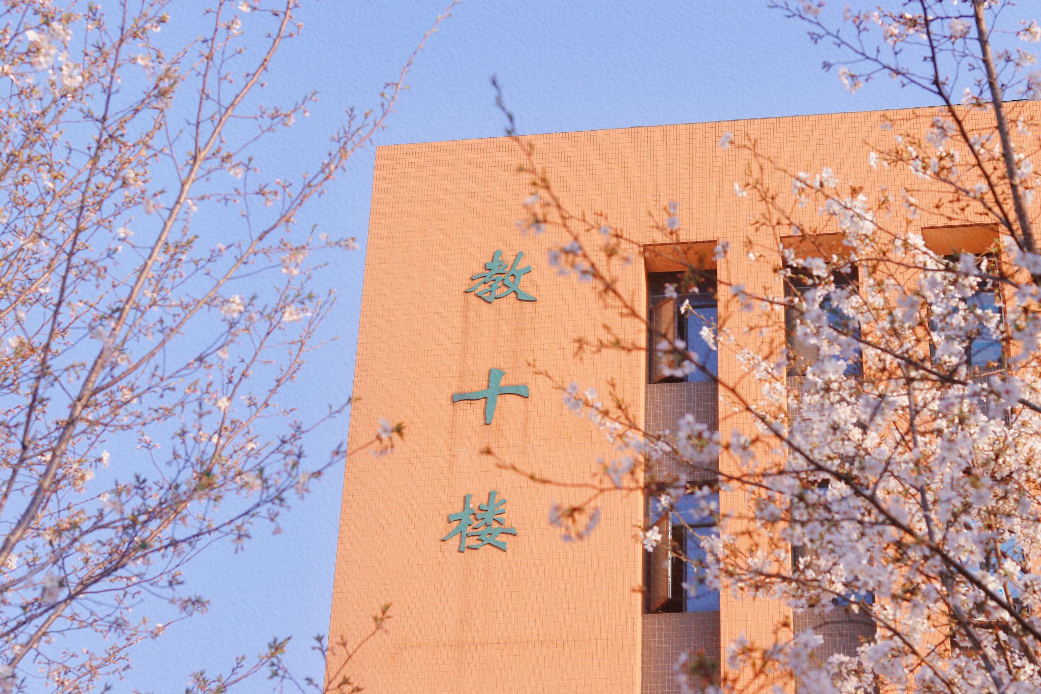 樱花与教一楼.徐秋琳摄