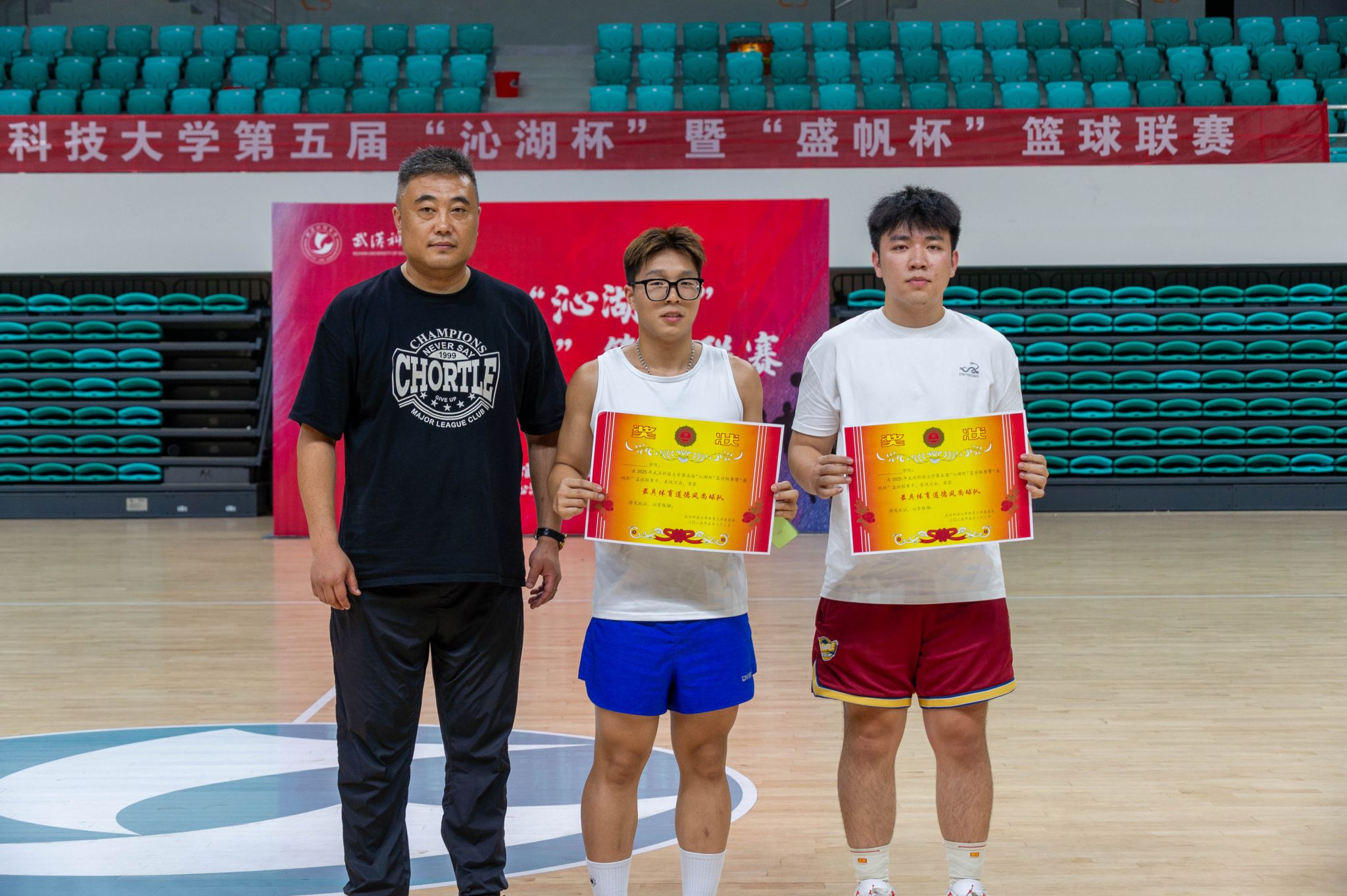 5月22日晚,第五届"沁湖杯"暨"盛帆杯"篮球联赛男子组决赛在我校黄家湖校区沁湖体院馆举行,季军争夺赛由资环学院对阵城建学院,冠亚争夺赛由体育学院对阵计算机学院,现场热闹非凡,赛况激烈,最终计算机学院以74:61战胜体育学院获得比赛冠军。(刘川峰 王翔宇)