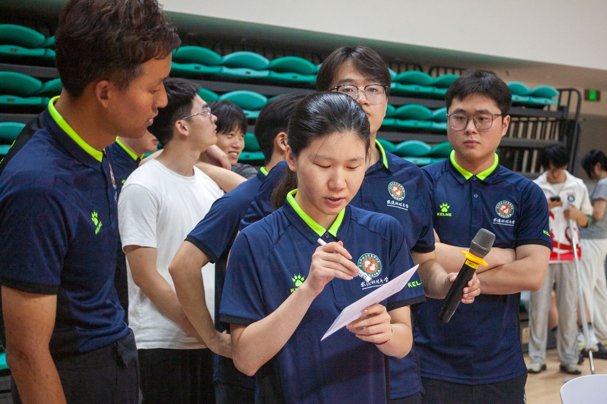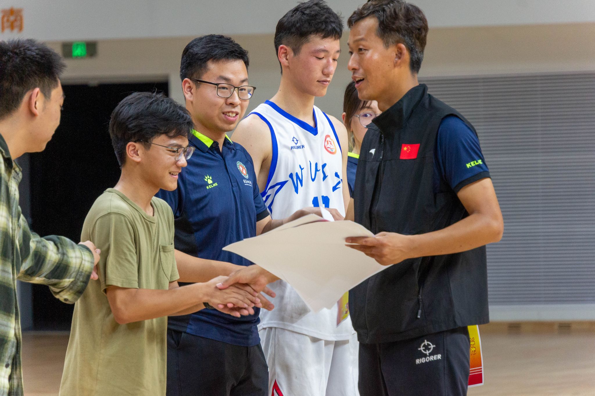 饶威为优秀裁判员颁奖 特写 王翔宇摄