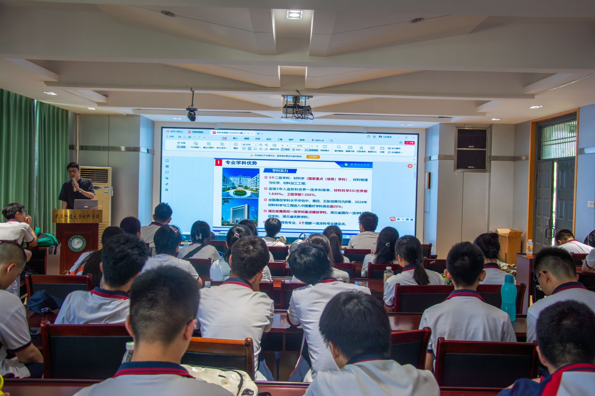 7月2日上午,武汉中学师生来校开展“以科普之基筑科技强国之路,用科学之光引创新发展之航”为主题的研学活动。本次研学活动主要围绕化学学科展开,本科招生办公室主任朱明、化学与化工学院副教授高天、材料学部副教授雷文等出席本次活动,化学与化工学院团委书记易早月主持。