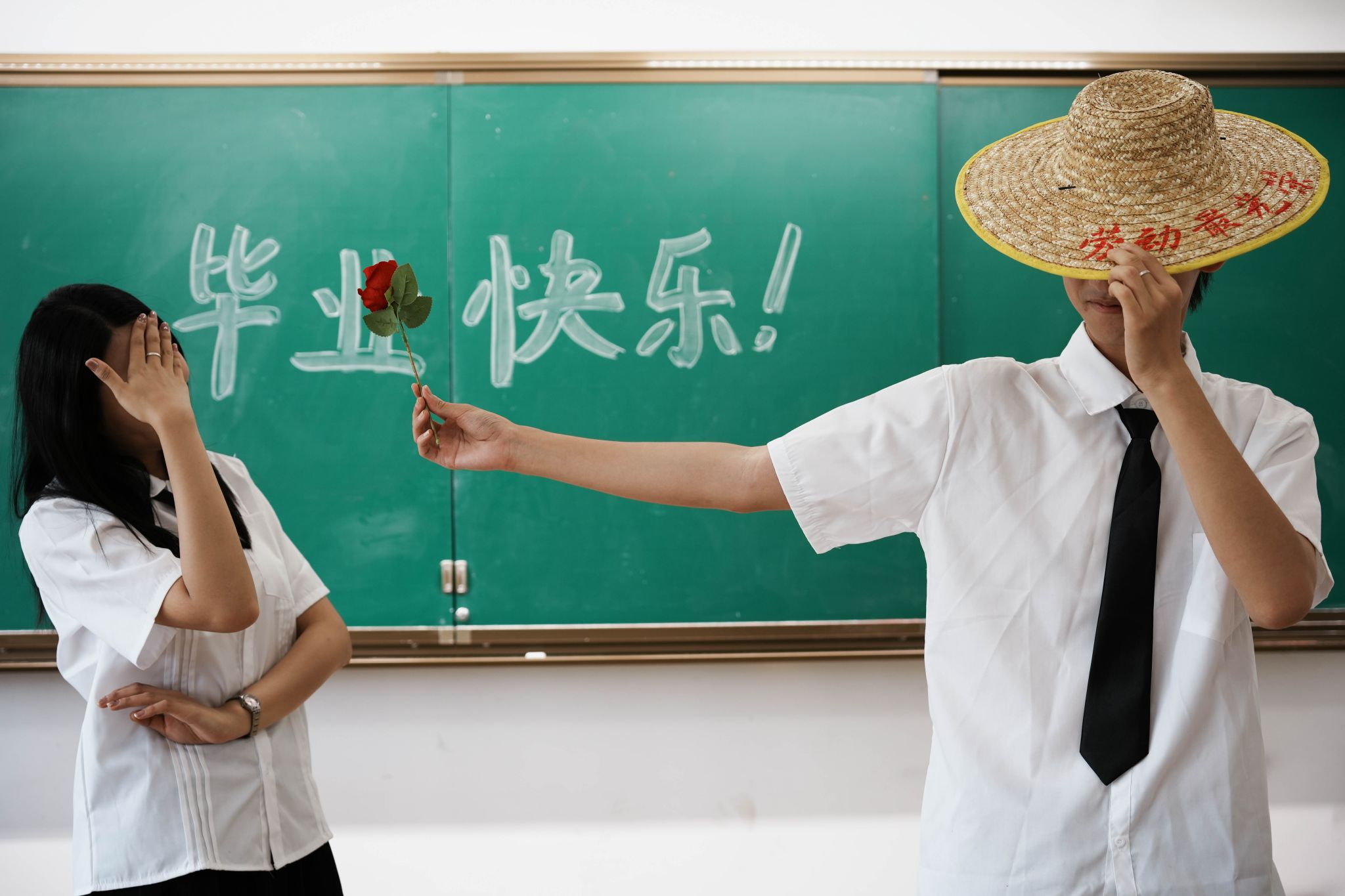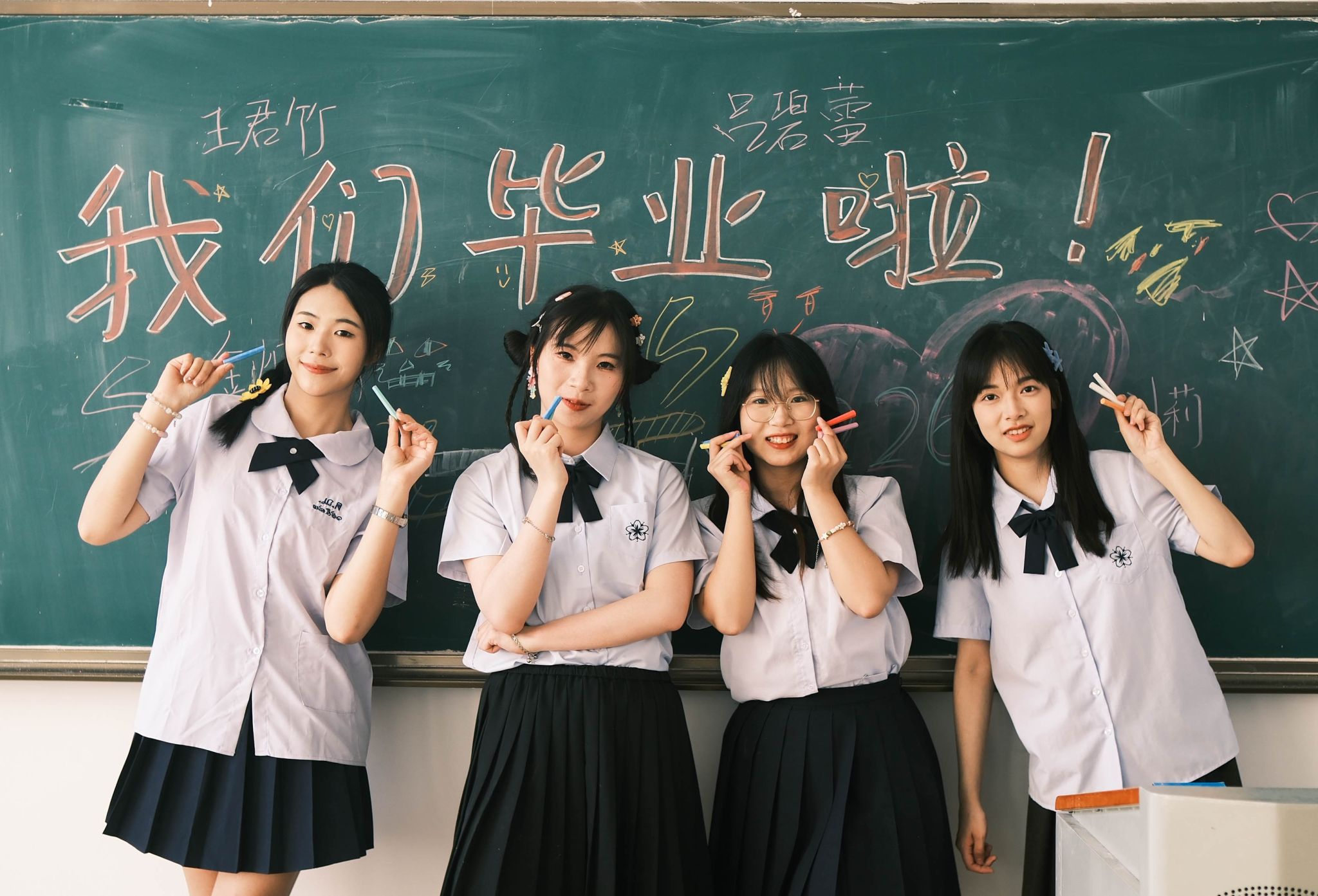 黑板毕业合照中间 陈薏帆摄