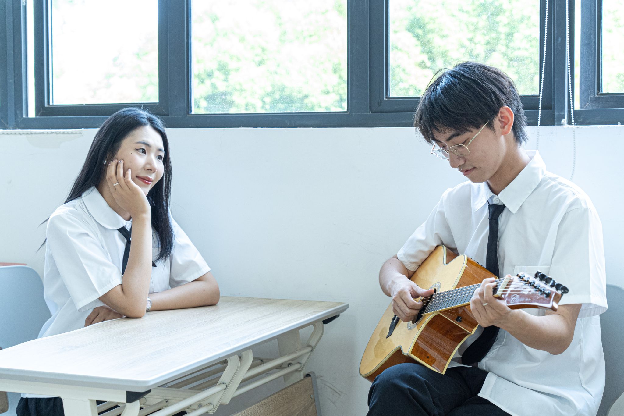 女生听男生弹吉他 张贝贝摄