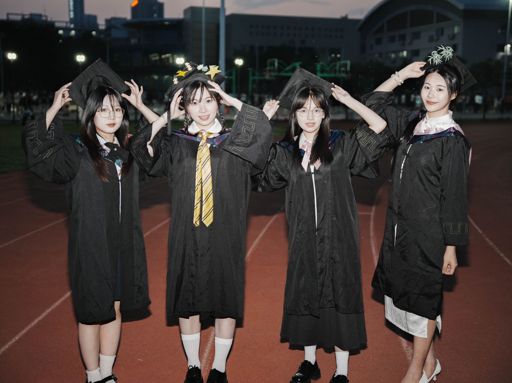 在跑道上的学士服合照 张贝贝摄