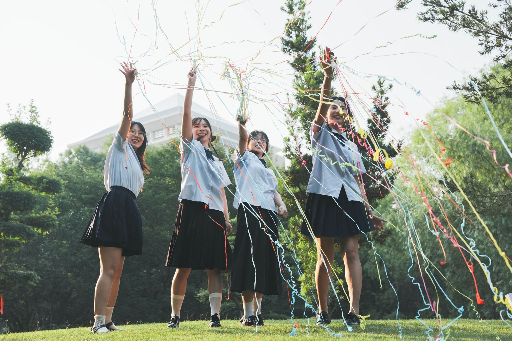 在草坪上抛彩带 张贝贝摄