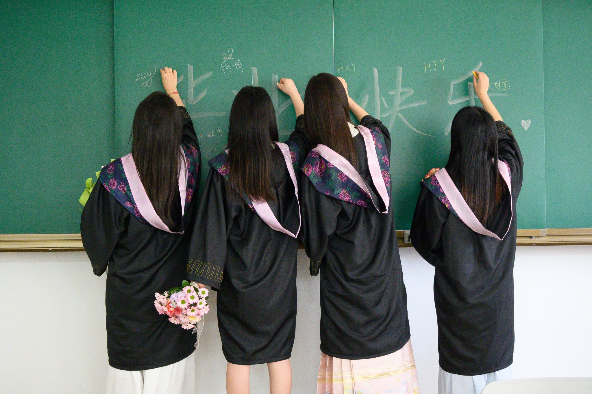 教室合影捧花 刘川峰摄