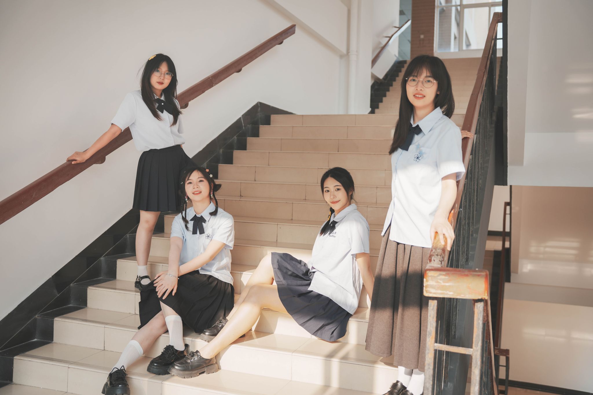 在楼梯上的群像姿势 张贝贝摄
