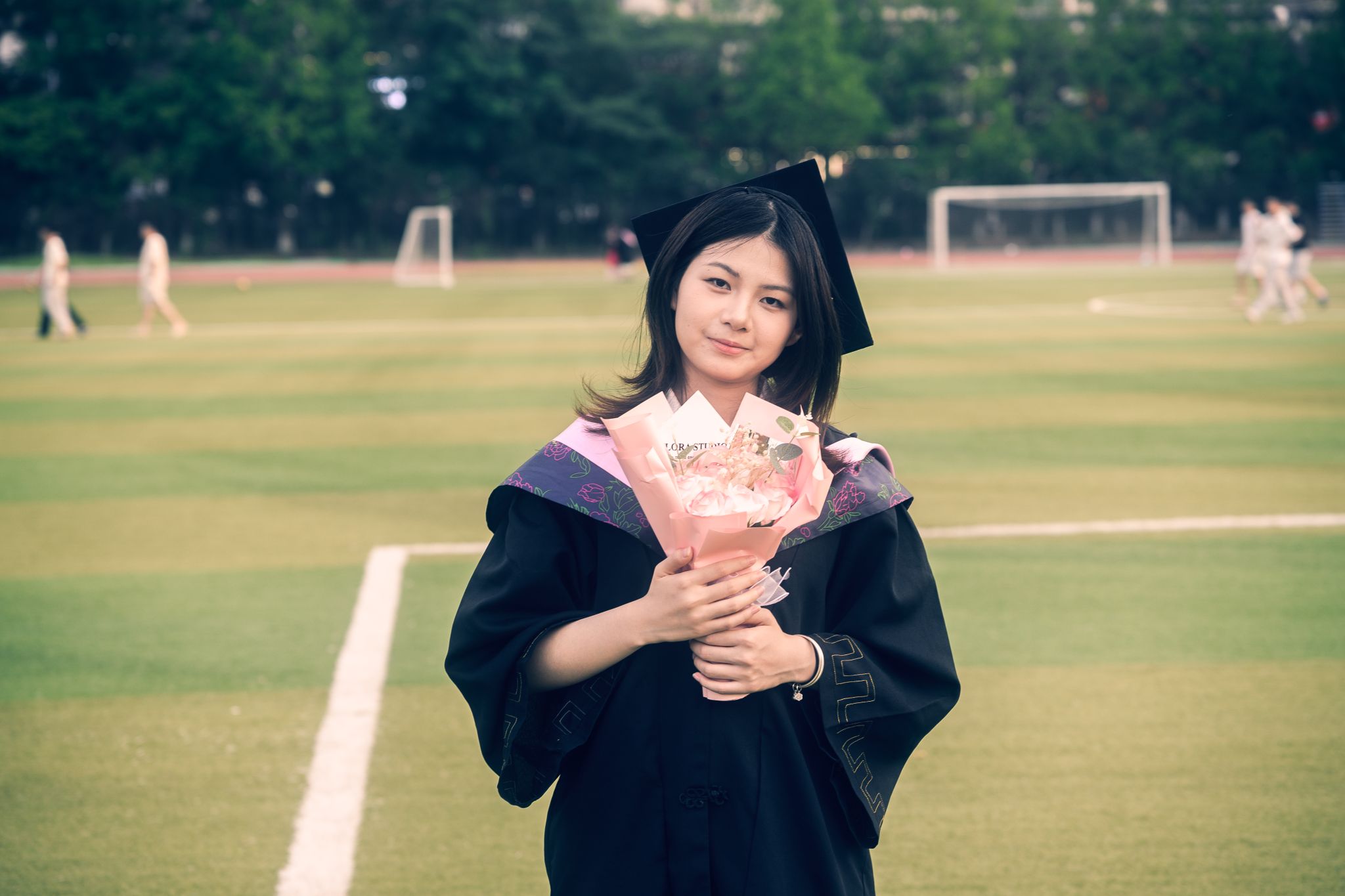 跑道上学士服合照 近景 陈薏帆摄