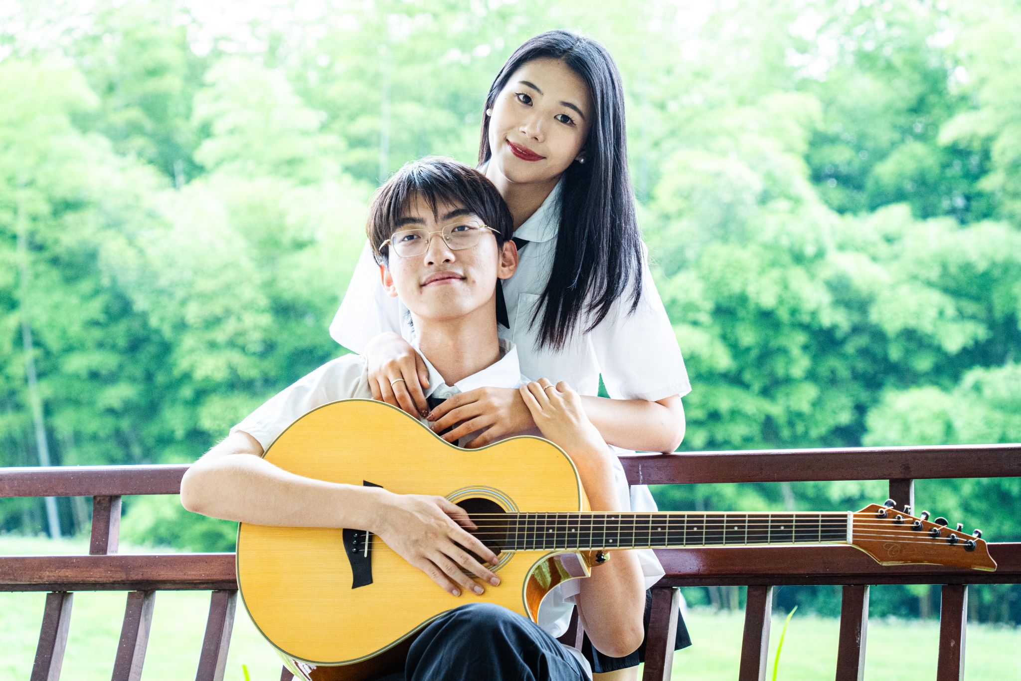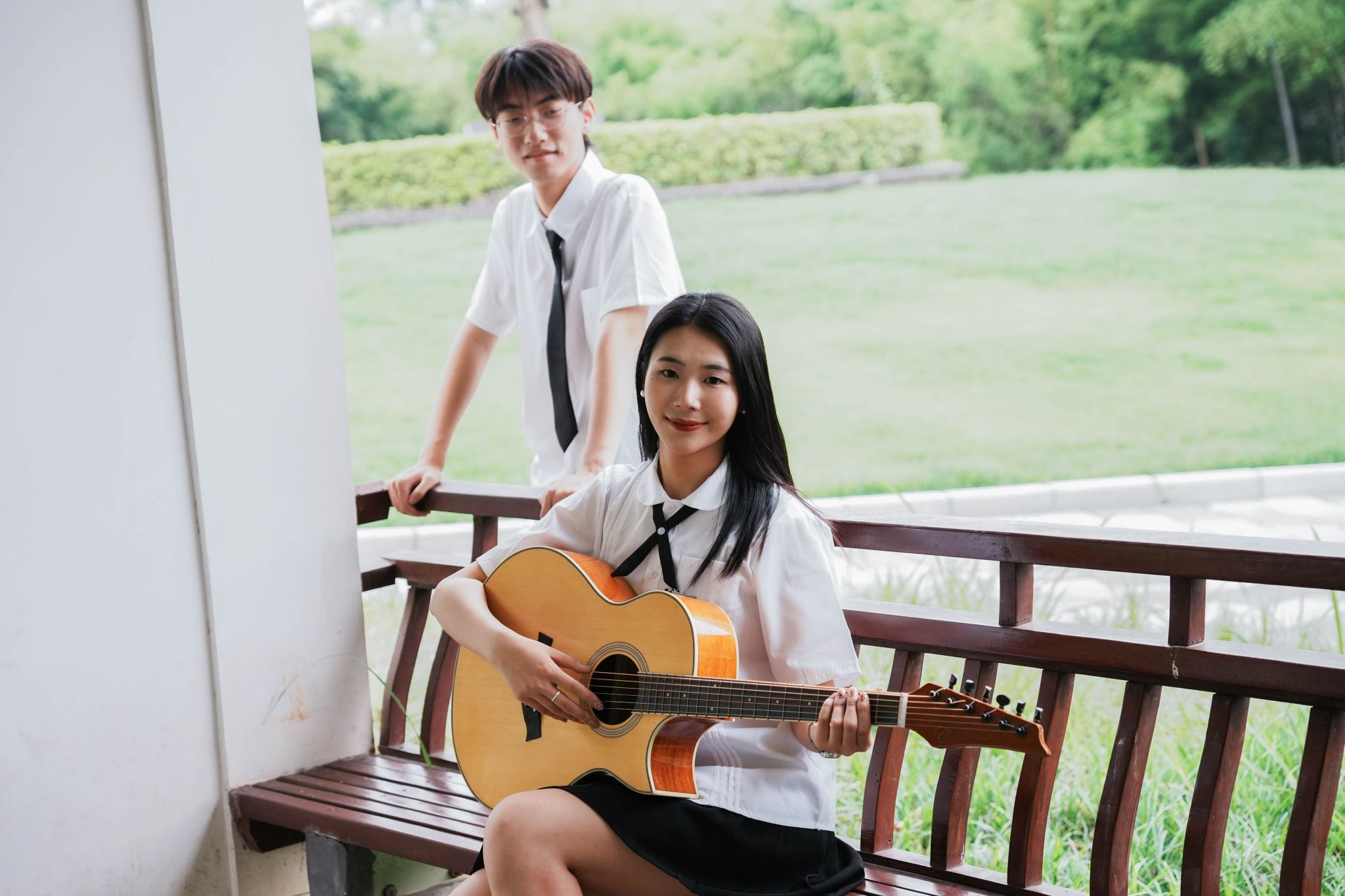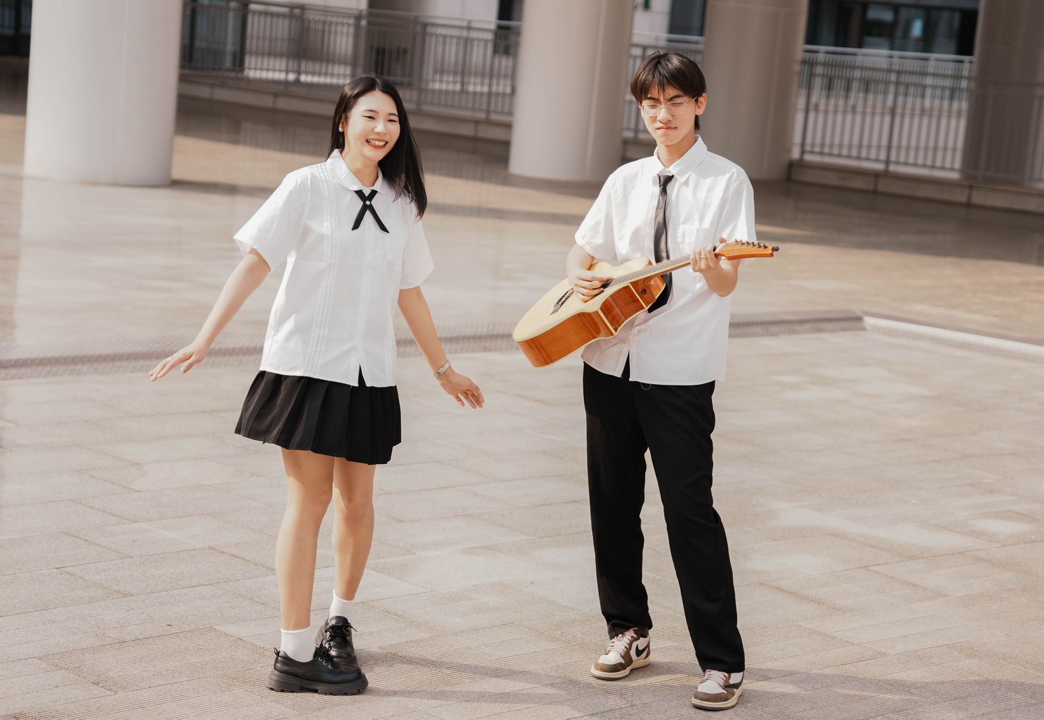 男女生在阶梯上弹吉他 张贝贝摄