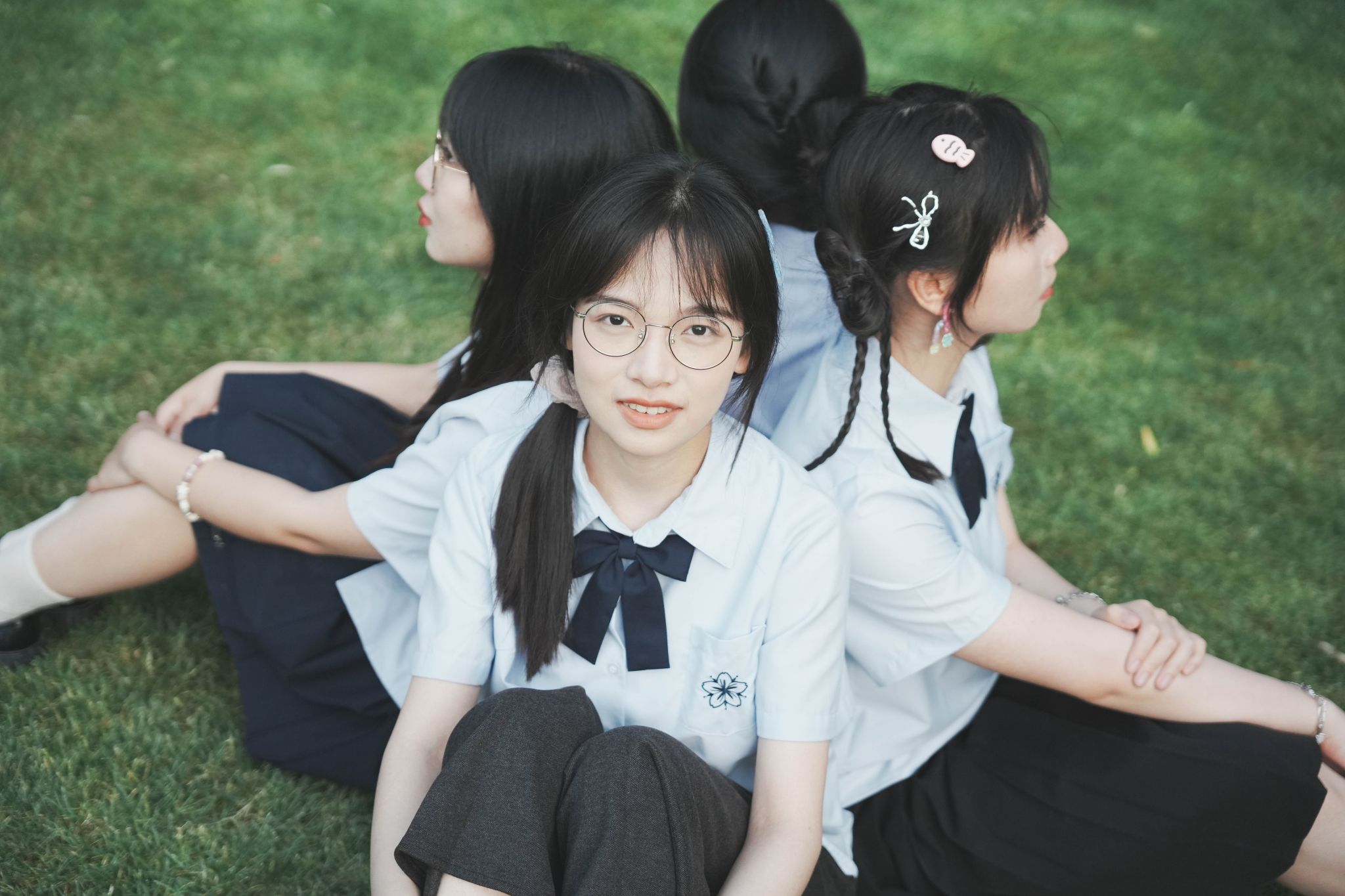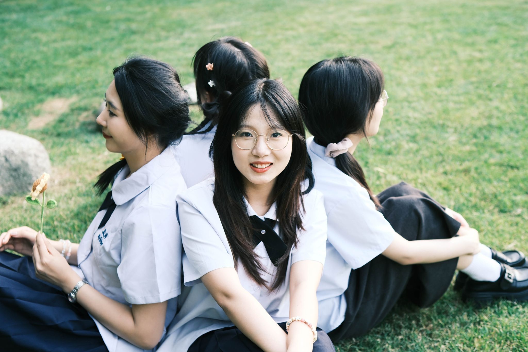 围坐草坪单人特写 陈薏帆摄