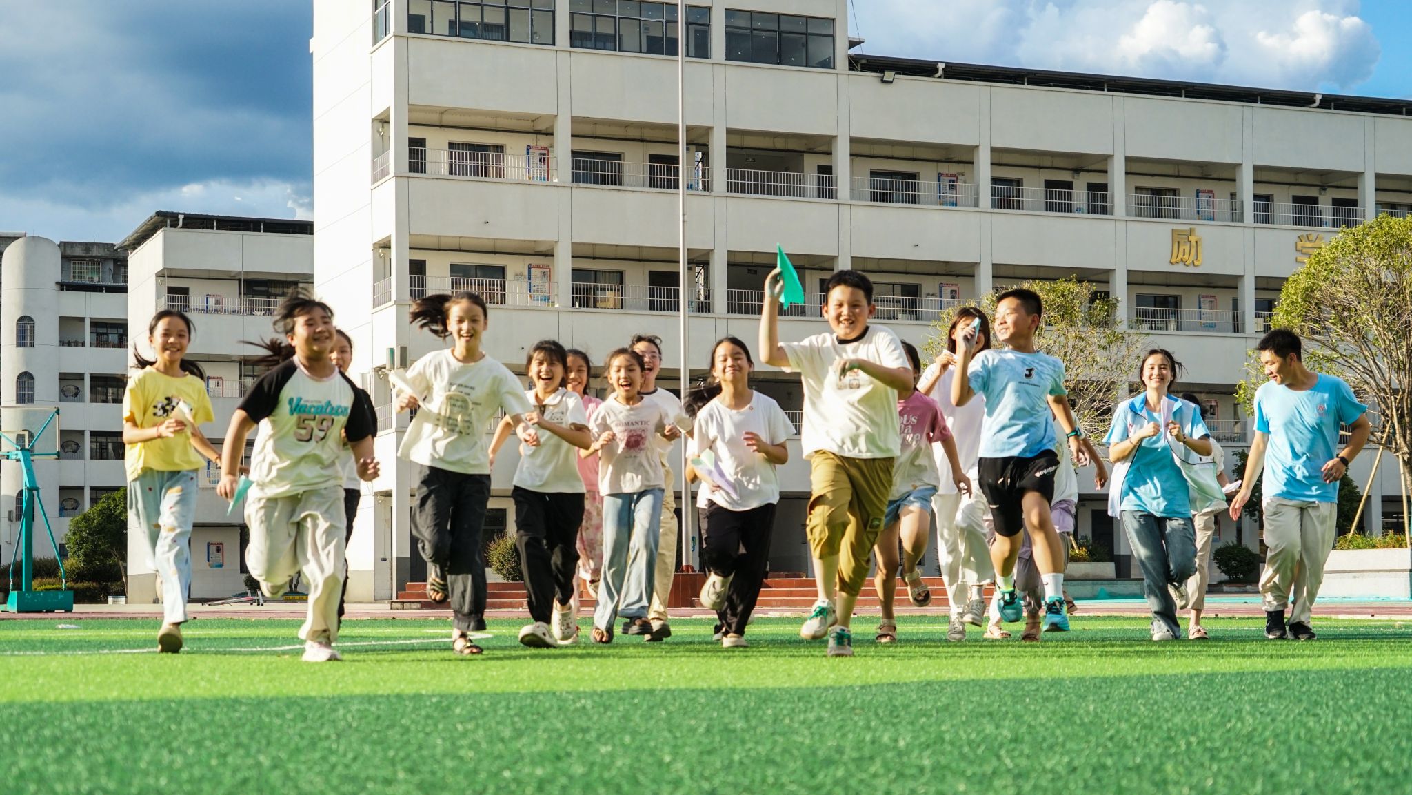 老师与学生课下嬉戏瞬间 黄思雨摄
