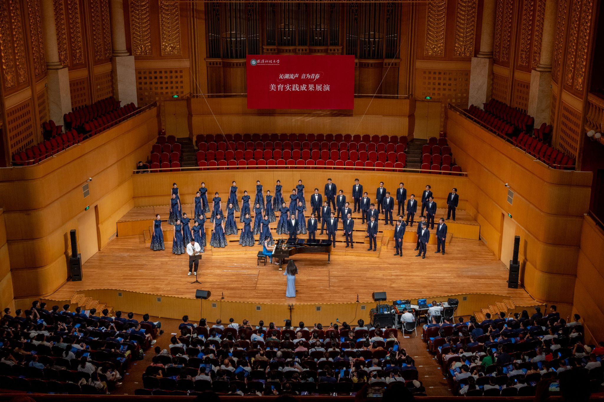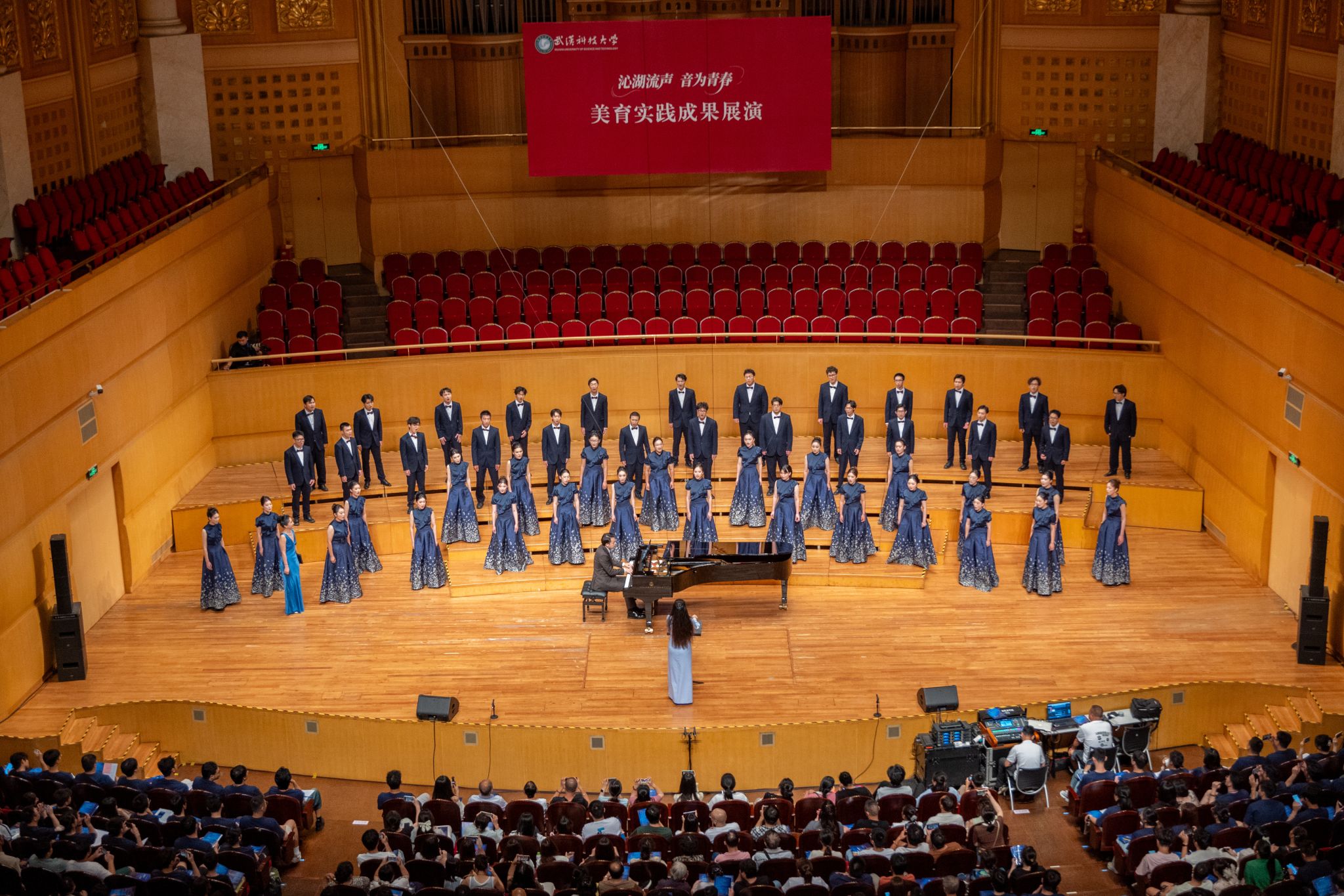 9月6日晚,我校“沁湖流声·音为青春”美育实践成果展演在武汉琴台音乐厅举行。校长倪红卫,党委副书记孙国胜,副校长吕勇、马腾,湖北省教育厅体育卫生与艺术教育处二级调研员姜贵君,湖北经济学院党委副书记汪达等出席活动,与数千余名师生、校友与音乐爱好者一同观看演出。