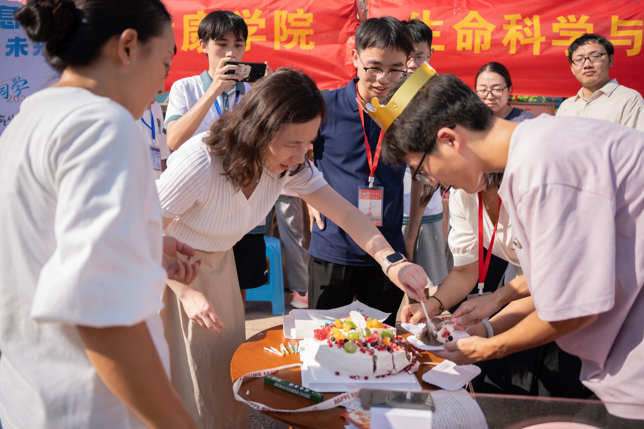 新生及其家长与生科院的老师同学们合影留念 张贝贝摄