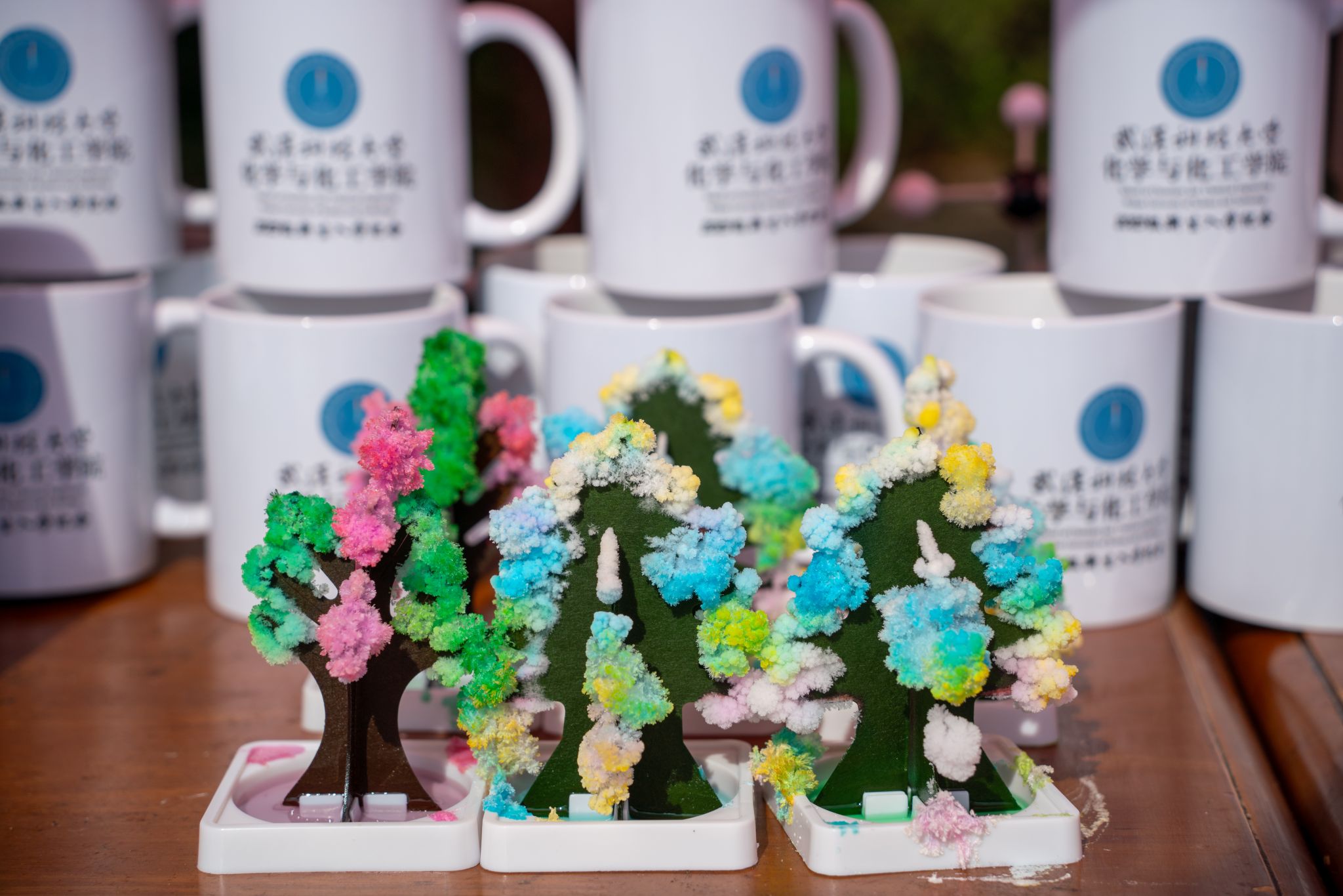 化工学院志愿者为校党委副书记孙国胜介绍文创杯子 王铭浩摄