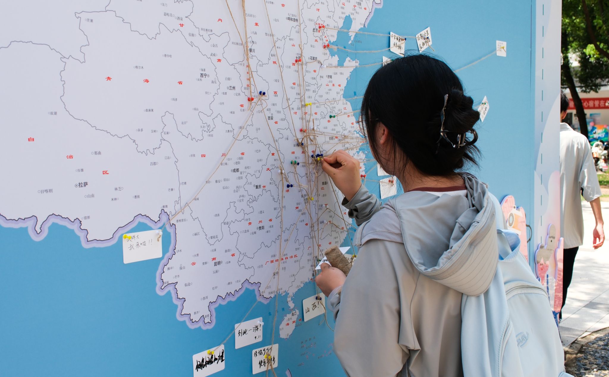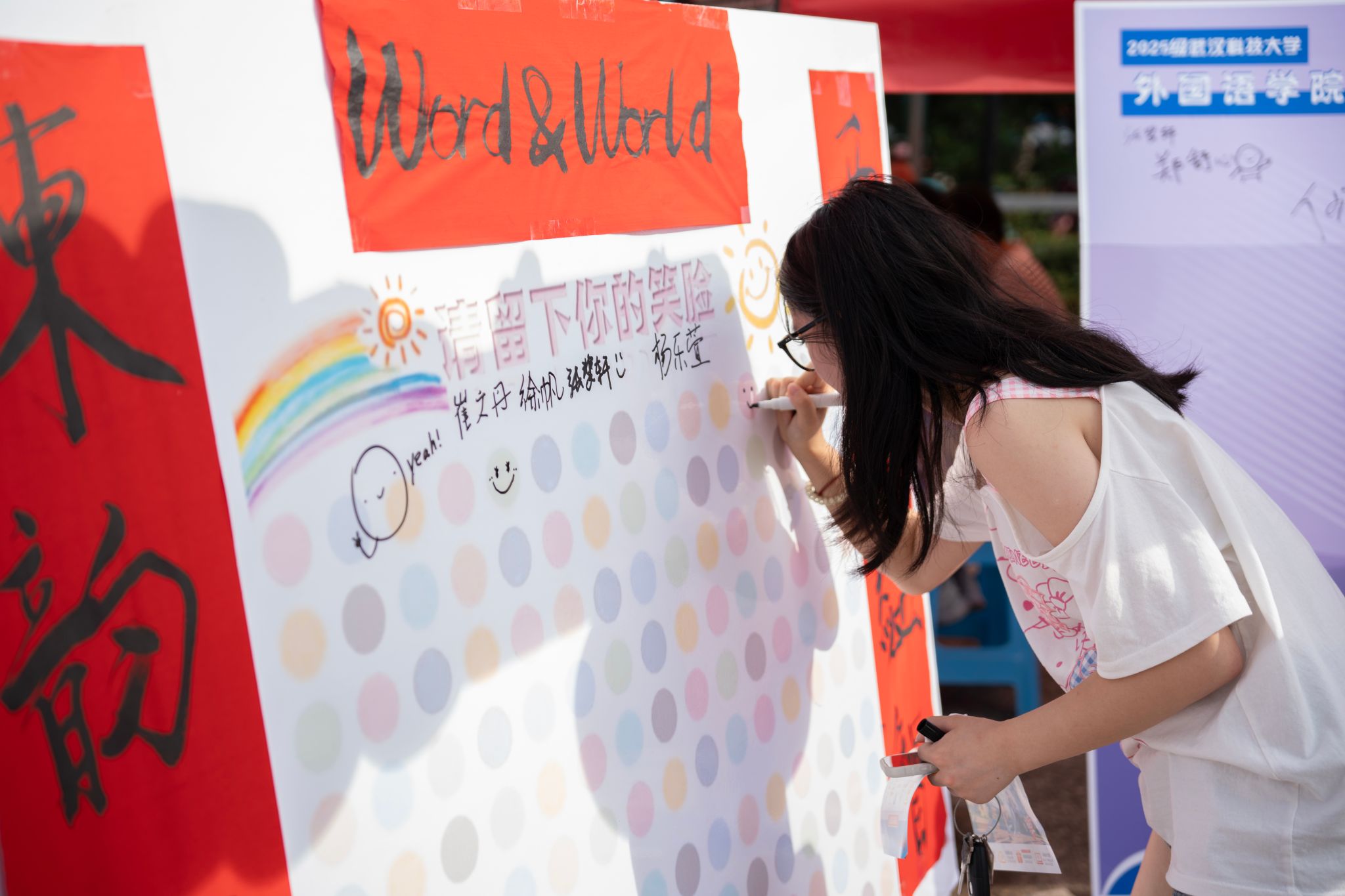 电子信息学院新生在签名墙留下自己名字 高文帅摄