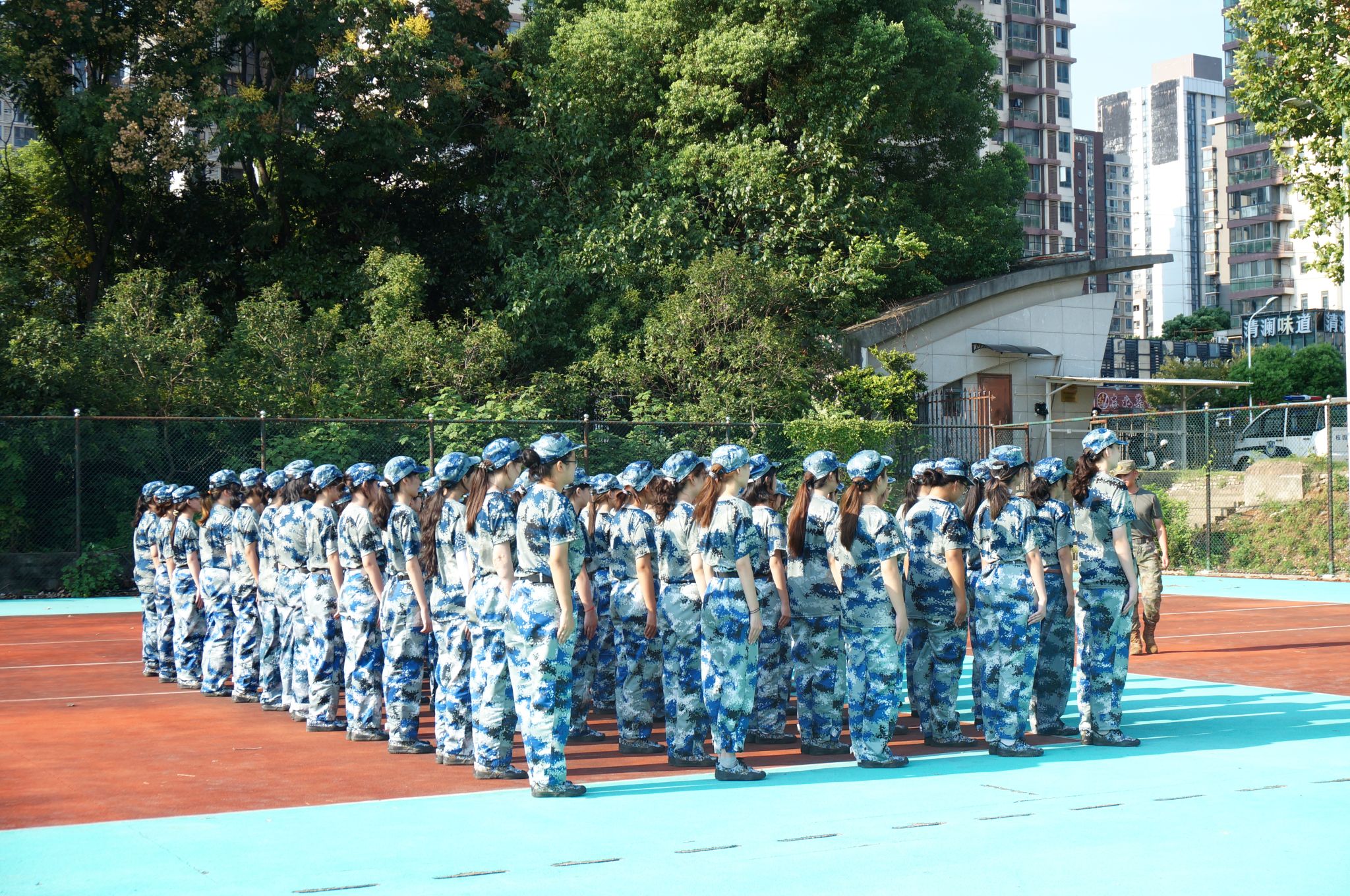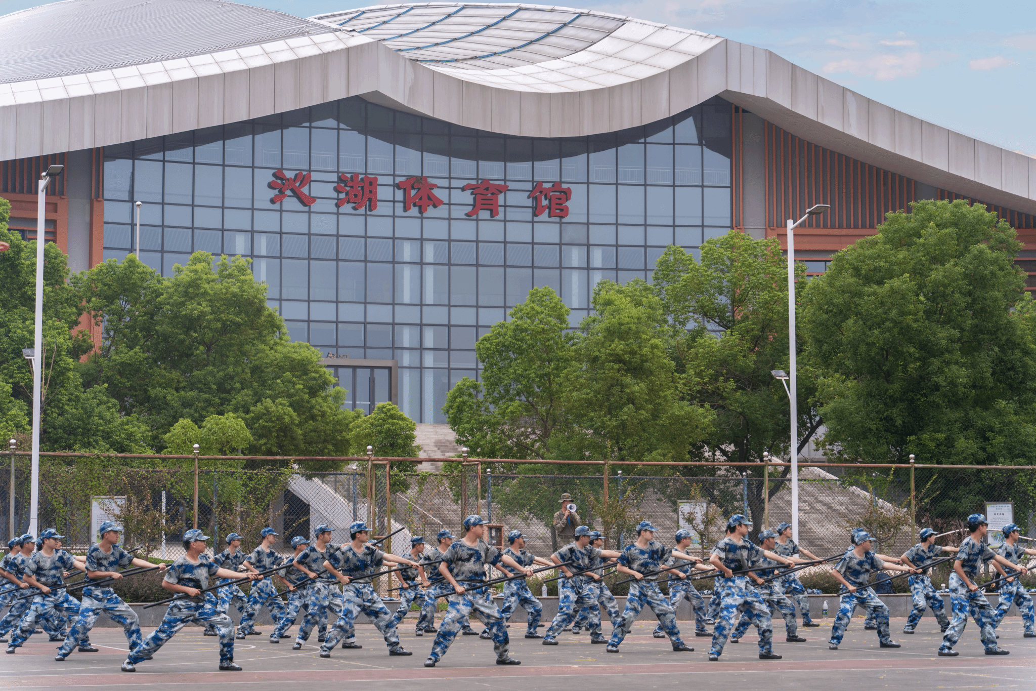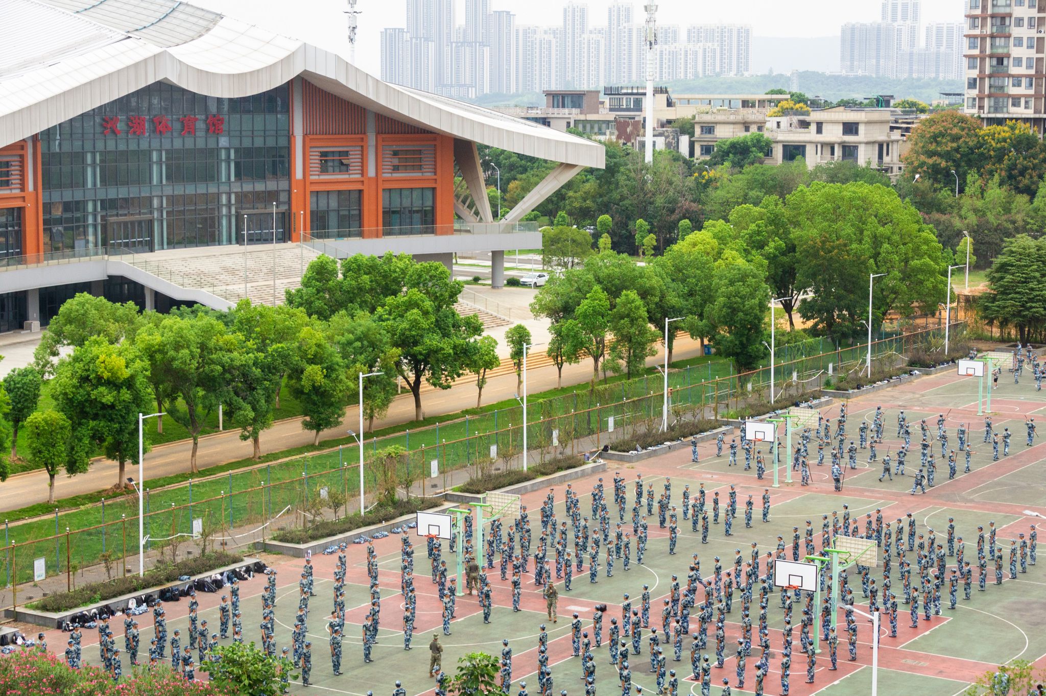 沁湖体育馆下的特色方队训练全景 王翔宇摄