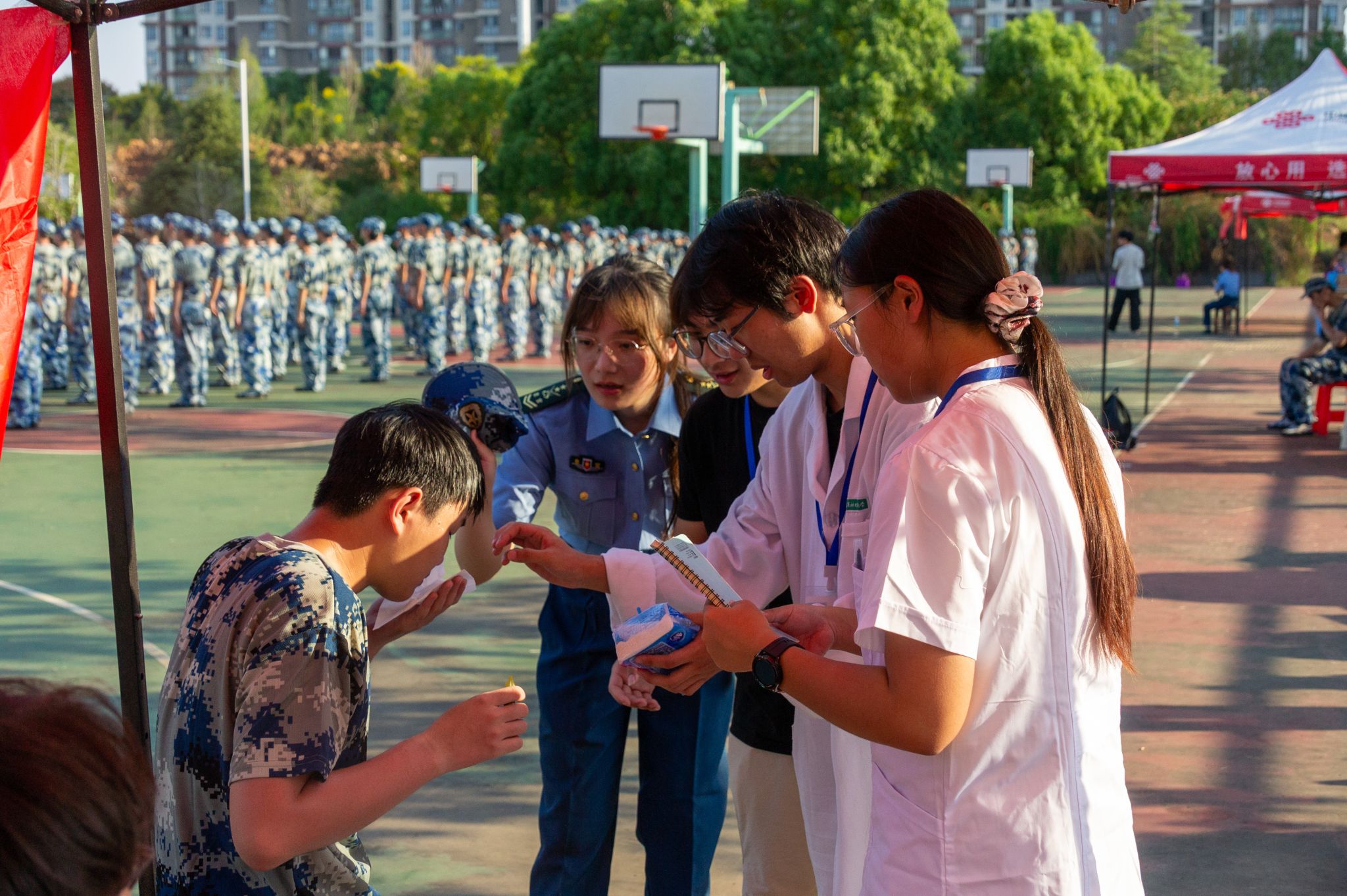 学生身体不适志愿者和辅导员齐帮忙 王翔宇摄