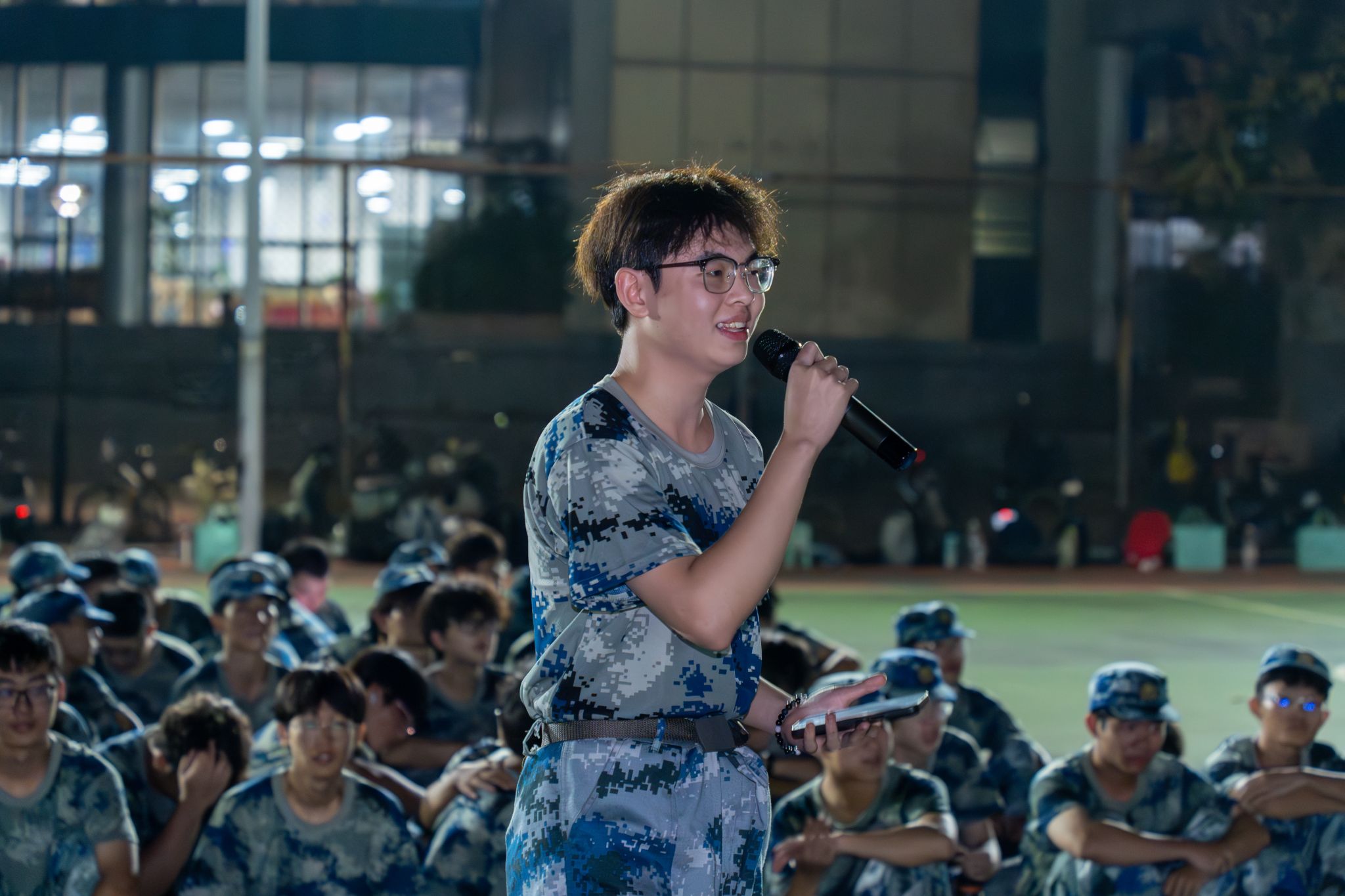 分列式夜训队列侧面 刘铮摄