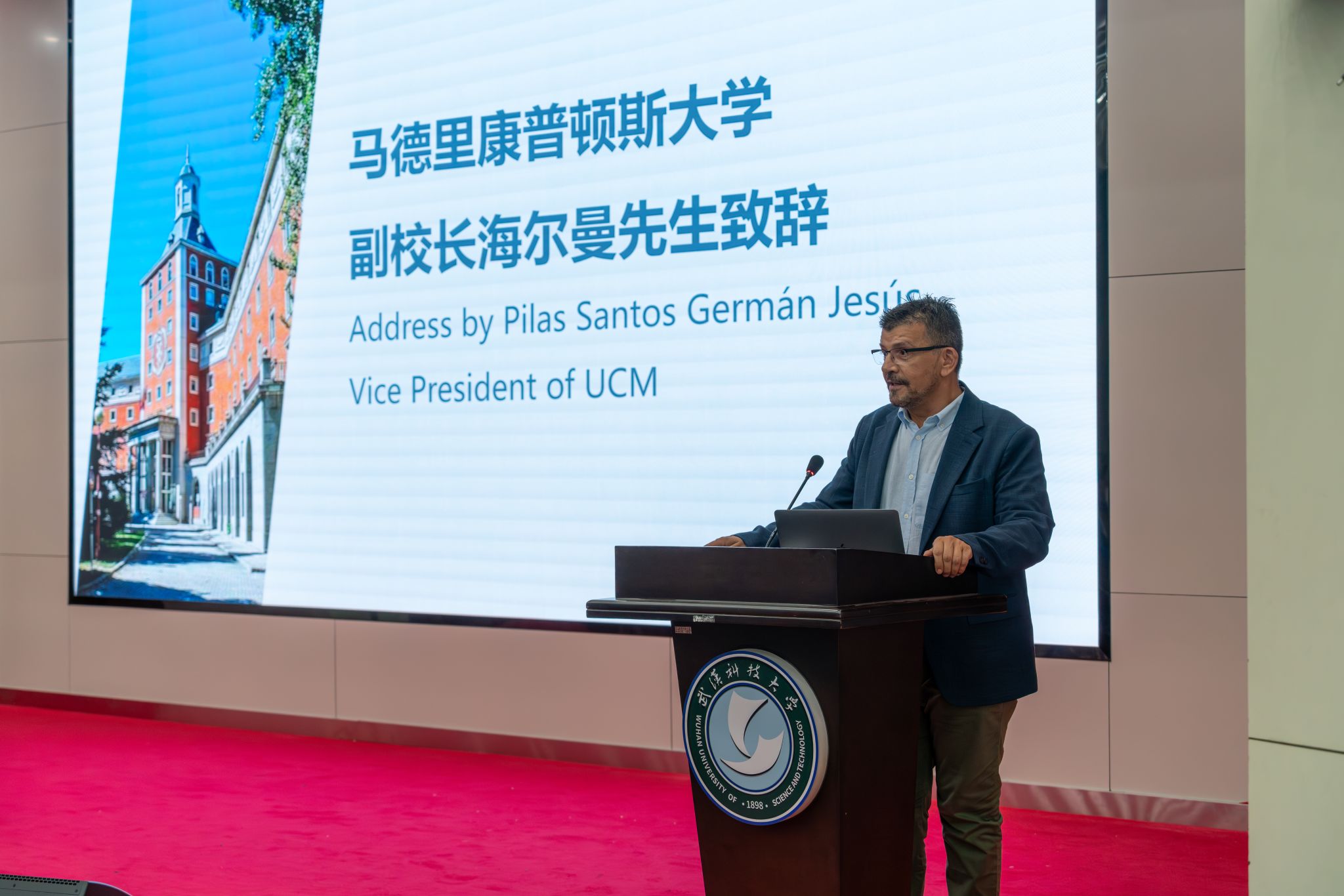 西班牙马德里康普顿斯大学副校长Pilas Santos German Gesus先生致辞特写 王铭浩摄
