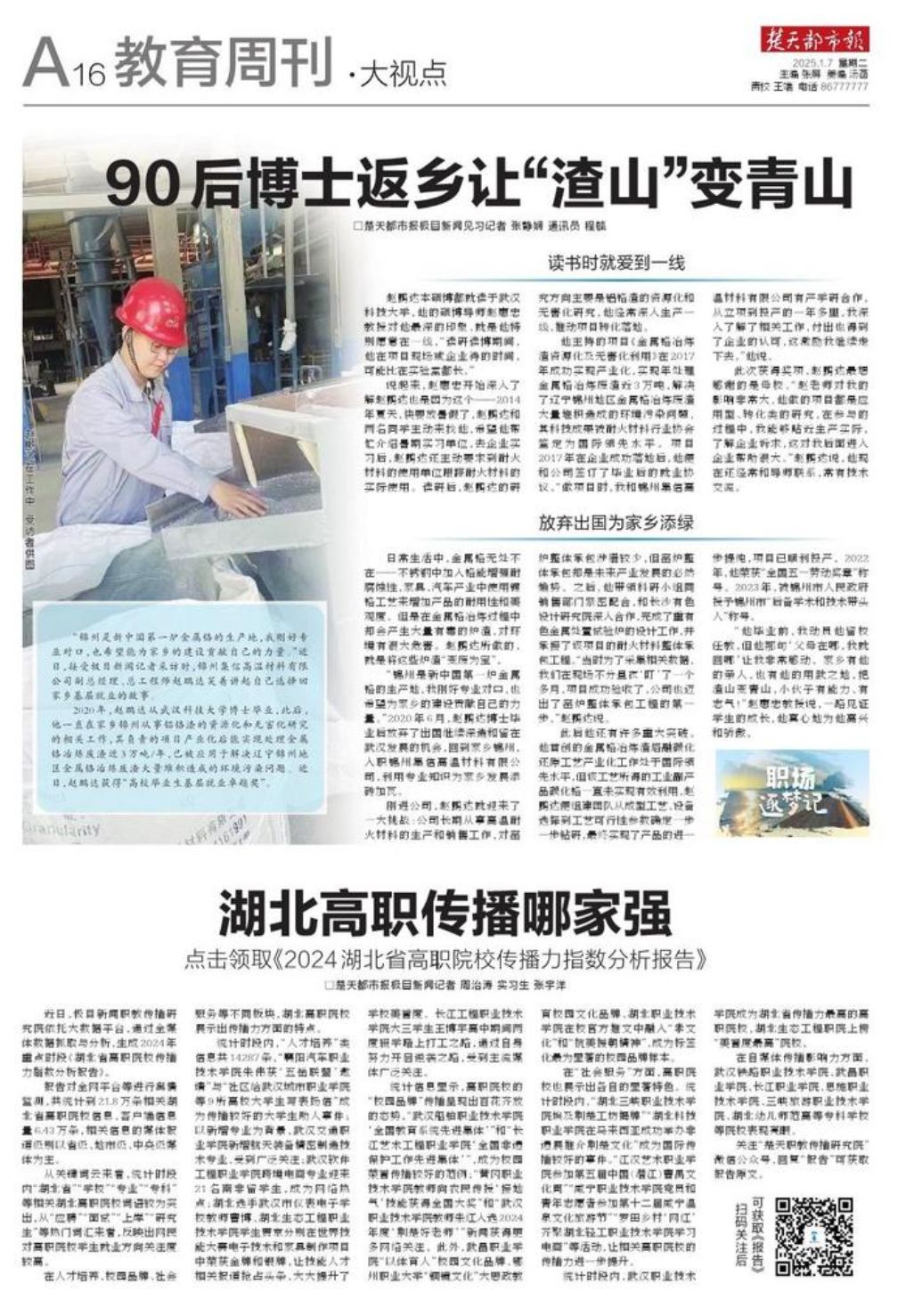 楚天都市报链接:90后博士返乡让“渣山”变青山