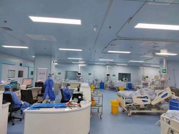 医院根据每个楼层特点规划病区,7楼定为重症ICU和血液净化科,10楼到13楼是轻症患者治疗区,14到19楼是新冠综合救治病区。每个楼层配备一个急救室,医生和护士组成不同团队,带着医疗设备组建各自病区,每个病区负责50到60张床位。