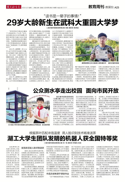 楚天都市报:29岁大龄新生在武科大重圆大学梦