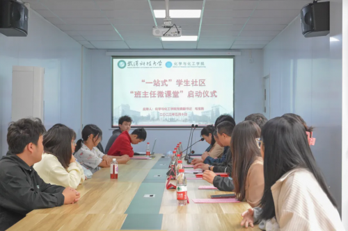 许立桥代表校党委学生工作部对化工学院“一站式”学生社区“班主任微课堂”的成立表示祝贺。他表示,化工学院“班主任微课堂"入驻一站式学生社区,是“一站式”学生社区育人功能提升的重大创新,在武科大一站式学生社区的发展进程中具有重要的实践意义。同时,许立桥希望,化工学院的“班主任微课堂”可以做到“坚持问题导向”、“坚持立足实际”、“坚持品牌孕育”,建成独具我校特色的集成式一站式学生社区群落,形成一站式学生社区育人新生态圈。
