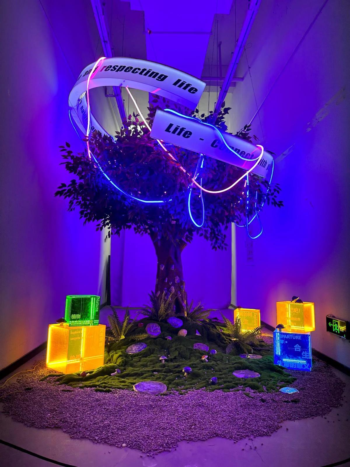 装置作品《织梦》,呈现新式青绿山水之姿,表达对现实生活的热爱