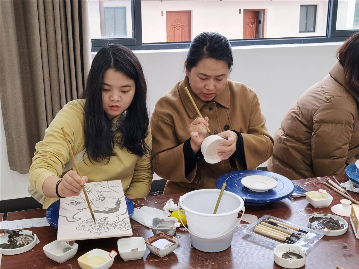 “青花和釉彩不要混合涂,烧制后釉彩会把青花盖住!”“釉彩颜色边缘可以有轻微的接触,但不要融合过多,烧制后颜色会熔在一起的!”“不要拿着陶器的突起部分,一不小心就会掰断了!”体验现场,陶艺老师不断提醒,依然有不少人“踩雷”,对于尝试者而言,“踩雷”不是错误,而是新的实验。