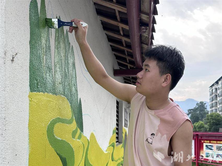 今年七月,他和队员们来到郧西县夹河镇金銮山村,和石庙子村相隔约60公里。在金銮山村,队员们发挥专业特长,与村民一起将当地的自然风光、风土人情绘于墙面、公厕等地,推动美丽乡村建设。还开展非遗课堂、地质科普等支教活动,奔赴汉江流域进行防汛调研,用自己的双手让村子越来越美。