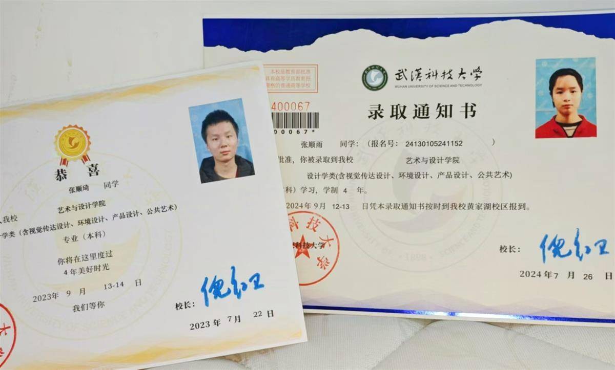 在张顺琦的支持和鼓励下,张顺雨最终考出了优异的成绩,将武科大填作第一志愿并成功录取。