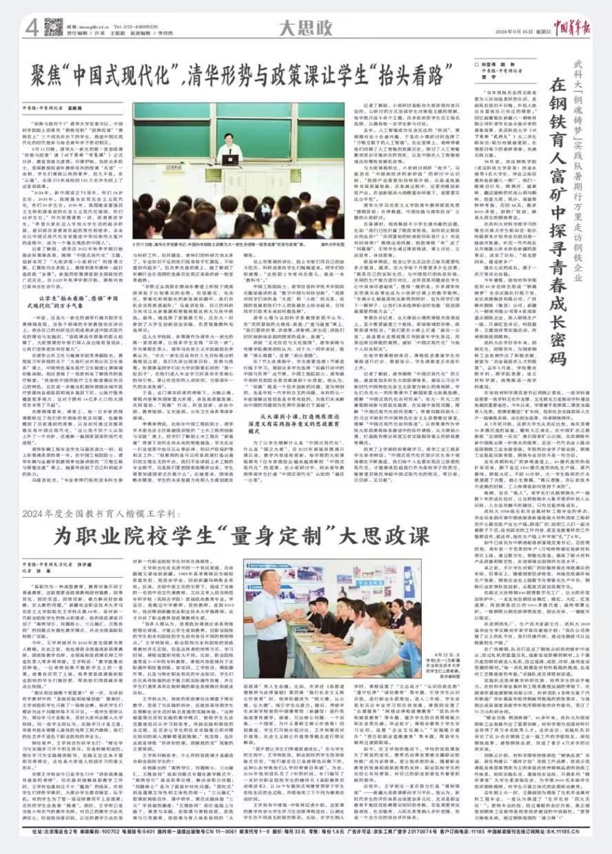 去年刚上大一时,王稼润因为填报了无机非金属材料工程专业,一度认为跌进了“生环化材‘四大天坑’”。想转专业的他,经过暑假的走访历练,真正感受到钢铁工业始终是国家经济建设的中流砥柱,“要努力锤炼本领,接过钢铁报国的‘接力棒’!”