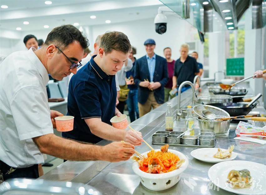 参加活动的外国专家来到湖北经济学院,参观钱币陈列馆,了解中国自先秦以来各个历史时期的钱币以及主要的金融工具;在湖北楚菜研究院观看楚菜纪录片,并现场观摩了楚菜大师制作经典楚菜,品尝“舌尖上的湖北”。之后,专家们一同在楚菜研究院西点国家集训基地体验了手工制作月饼,沉浸式感受中华传统节日的魅力。