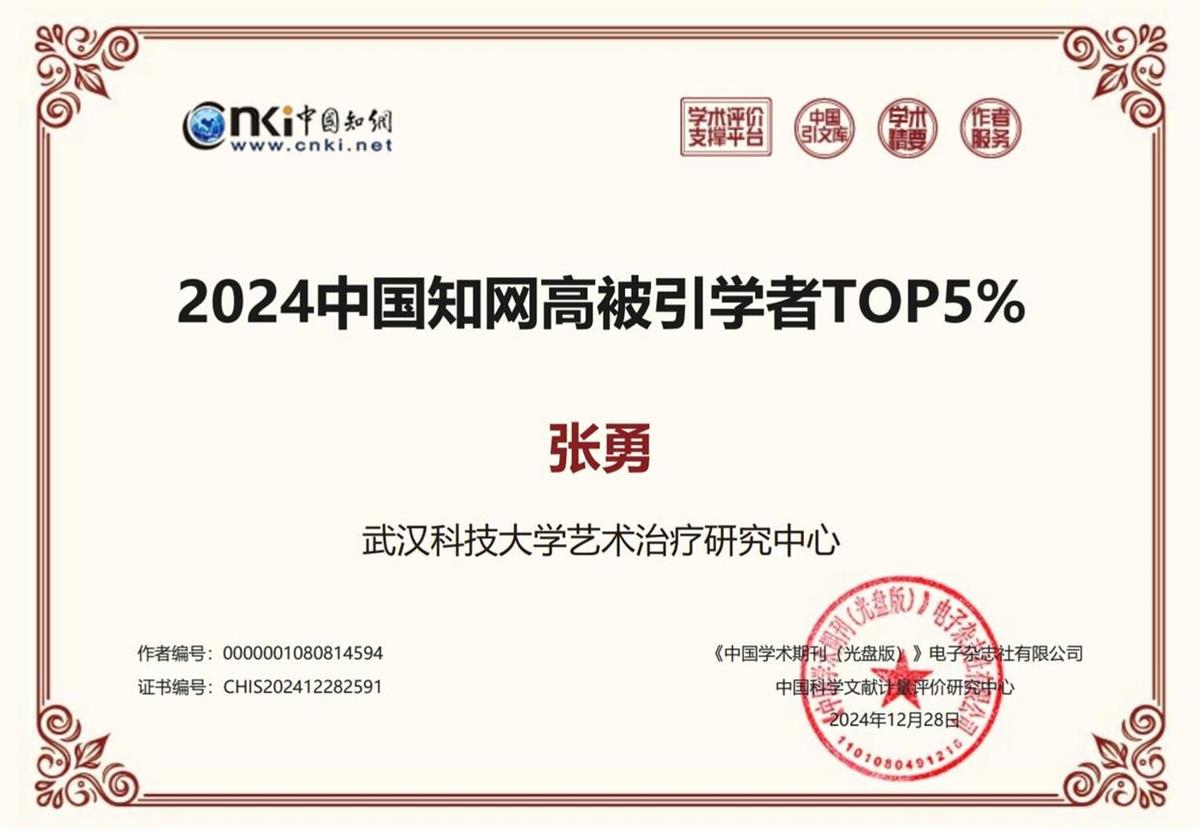 近日,中国知网公布“2024知网高被引学者”名单,中国知网中国科学文献计量评价研究中心基于中国知网收录的国内学术期刊论文和会议论文,2024年首次开展学者学术影响力客观评价,遴选了“2024中国知网高被引学者”名单,国产亚洲精品久久久久久久_无码AV免费精品一区二区三区_99久久久无码国产精品免费人妻_精品人妻无码一区二区三区在线_无码专区久久综合久综合字幕_久久精品国产一区二区三区四区_真实一级一级一片免费视频_特级精品毛片免费观看_国产成人无码AA片免费看艺术治疗研究中心音乐治疗学者张勇教授入选“2024中国知网高被引学者”TOP5%。