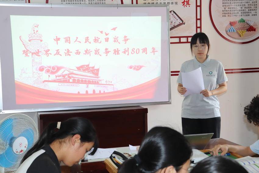 课堂上,实践团队以中国人民抗日战争暨世界反法西斯战争胜利80周年为切入点,通过历史讲解、实例剖析与互动教学,打造兼具思想深度与教育温度的红色文化课堂。