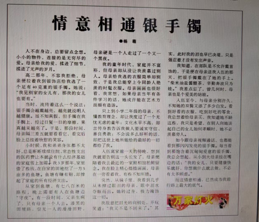 2021年5月,野外驻训地,机缘巧合中我成为了军营里的一名新闻工作者,从此有更多时间和机会写作,在军旅梦想中实现写作梦想。