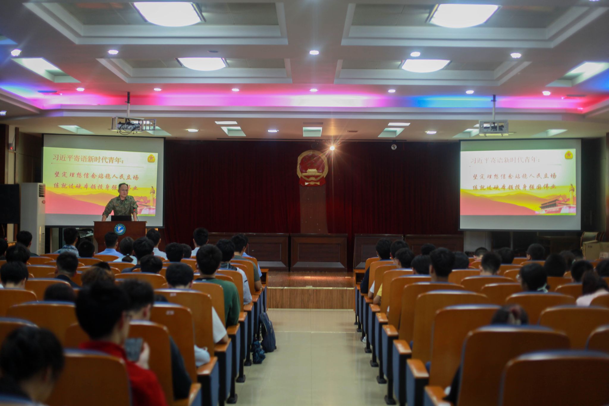 青山区人民武装部张兵从大学生入伍的重要意义、入伍优待政策、应征入伍流程等方面进行了征兵政策的细致解读,并结合当今国内外形势,引导学生要树立国防意识,鼓励大学生勇挑重担,时刻强化忧患意识,把自己与祖国的命运相结合,积极投身军营为国防建设奉献自己,在实现强军梦中绽放光彩。
