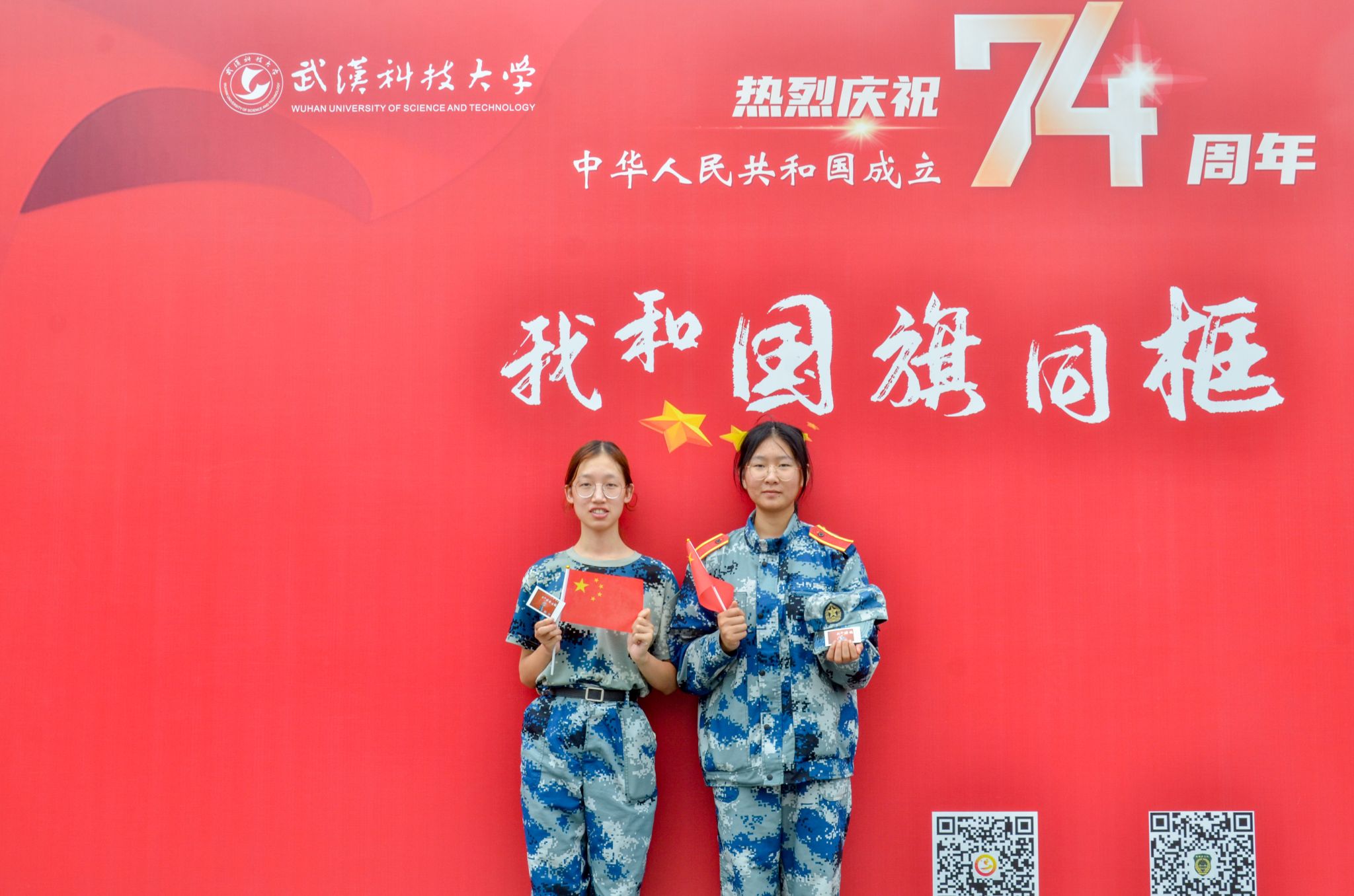 武科大网讯(记者梁绮琪 通讯员牛美懿)线上留言文字祝福,线下与国旗同框合影共庆祖国74岁生日。国庆前夕,我校团委在该校杏坛广场开展国庆系列活动,师生们踊跃参与其中,共同庆祝祖国生日。