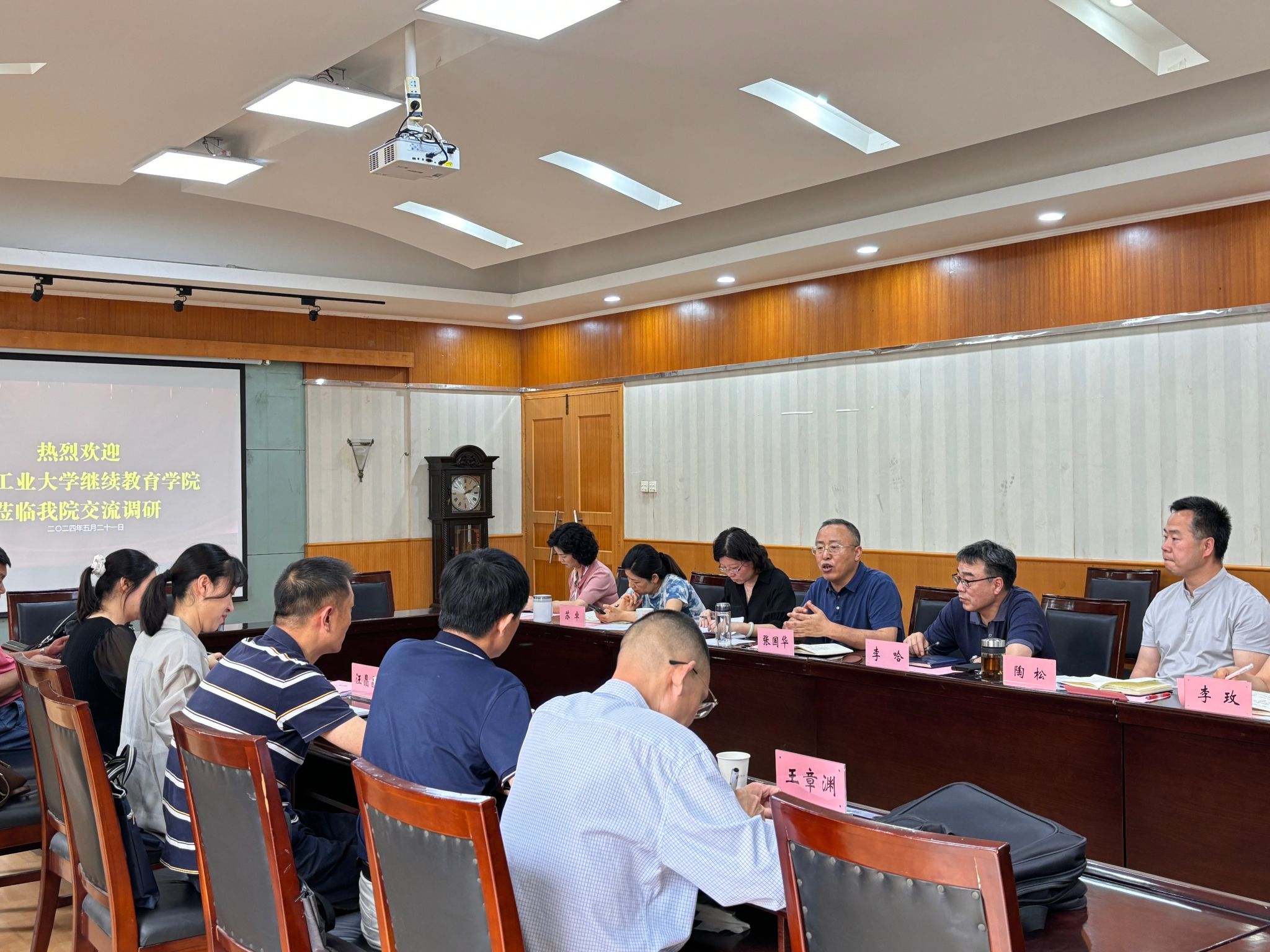 湖北工业大学继续教育学院学籍办主任李珺、招生办主任潘永清、教学班主任周海明、信息化办主任王章渊,我校继续教育学院成人教育办公室主任毕元玲、主任助理李玫、副主任苏卓、刘雁飞和付梦参加座谈交流。