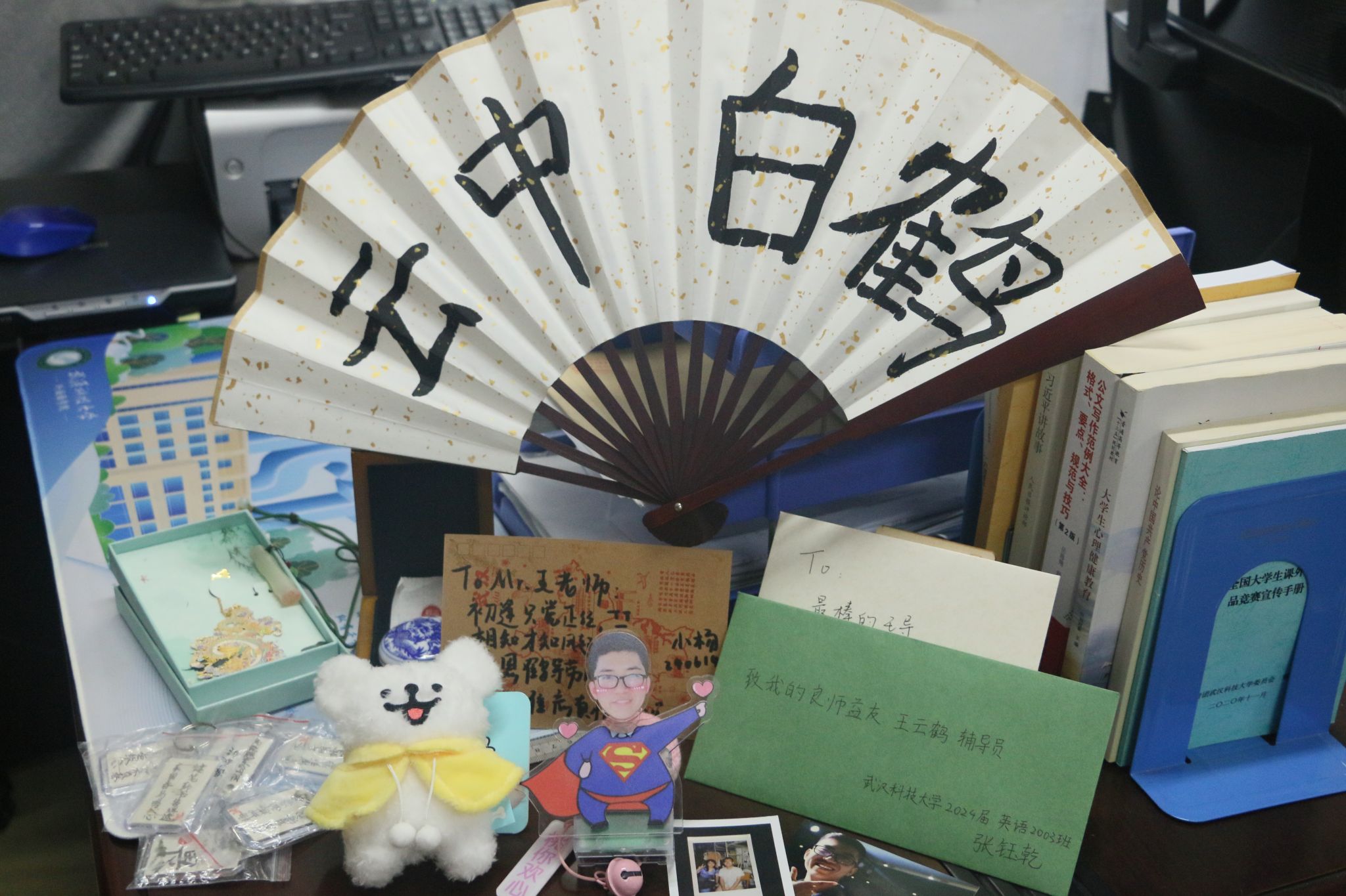 武科大网讯(记者朱佳怡 摄影朱佳怡)毕业季来临,我校2020级辅导员王云鹤办公桌上堆满了感谢信和精美小礼物,其中一个定制超人挂件摇头晃脑地咧嘴笑着。据悉,王云鹤手写170余首原创藏头诗,为毕业生送上专属钥匙扣,其毕业生纷纷转发晒朋友圈分享自己和“超人王妈”的故事,回赠感谢信和小礼物。