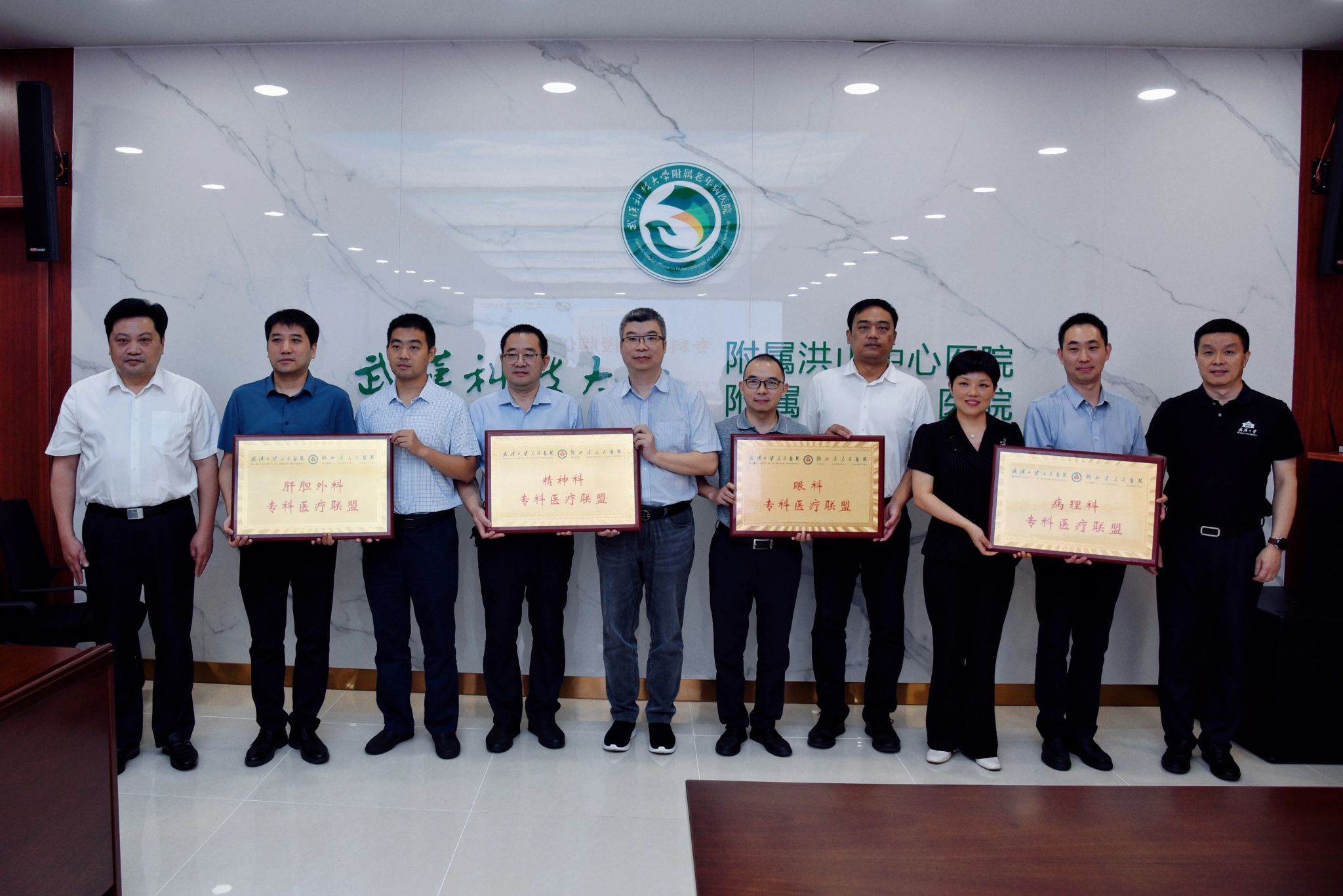 武科大网讯 9月13日,湖北省人民医院(武汉大学人民医院)与我校附属老年病医院(附属洪山中心医院)举行协作医院揭牌暨专科联盟授牌仪式。我校附属老年病医院党委书记谭伟出席揭牌,揭牌仪式由院长助理胡姗姗主持,院长助理吴钒、相关职能部门负责人、七个专科联盟科室负责人共同见证这一重要时刻。