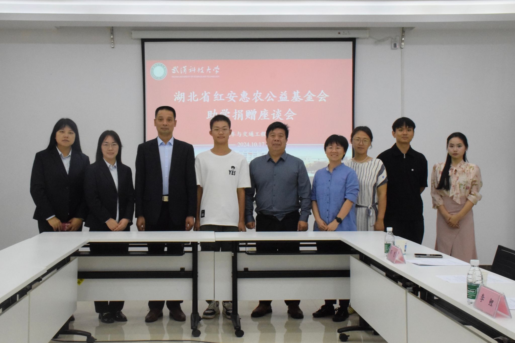 武科大网讯(通讯员詹策 刘睿 摄影詹策)10月17日下午,湖北省红安惠农公益基金助学捐赠座谈会在教九楼90517顺利举行。湖北省红安惠农公益基金会理事长刘兴旺、秘书长袁阳、财务主管卢文芳,我校党委学生工作部副部长杨永彬、大学生资助中心专职教师李鲤、教育基金会专职教师邓思,汽车与交通工程学院党委副书记熊田田、2024级辅导员陈后强、机械类(汽车)2406班学生耿博文参加了本次座谈。