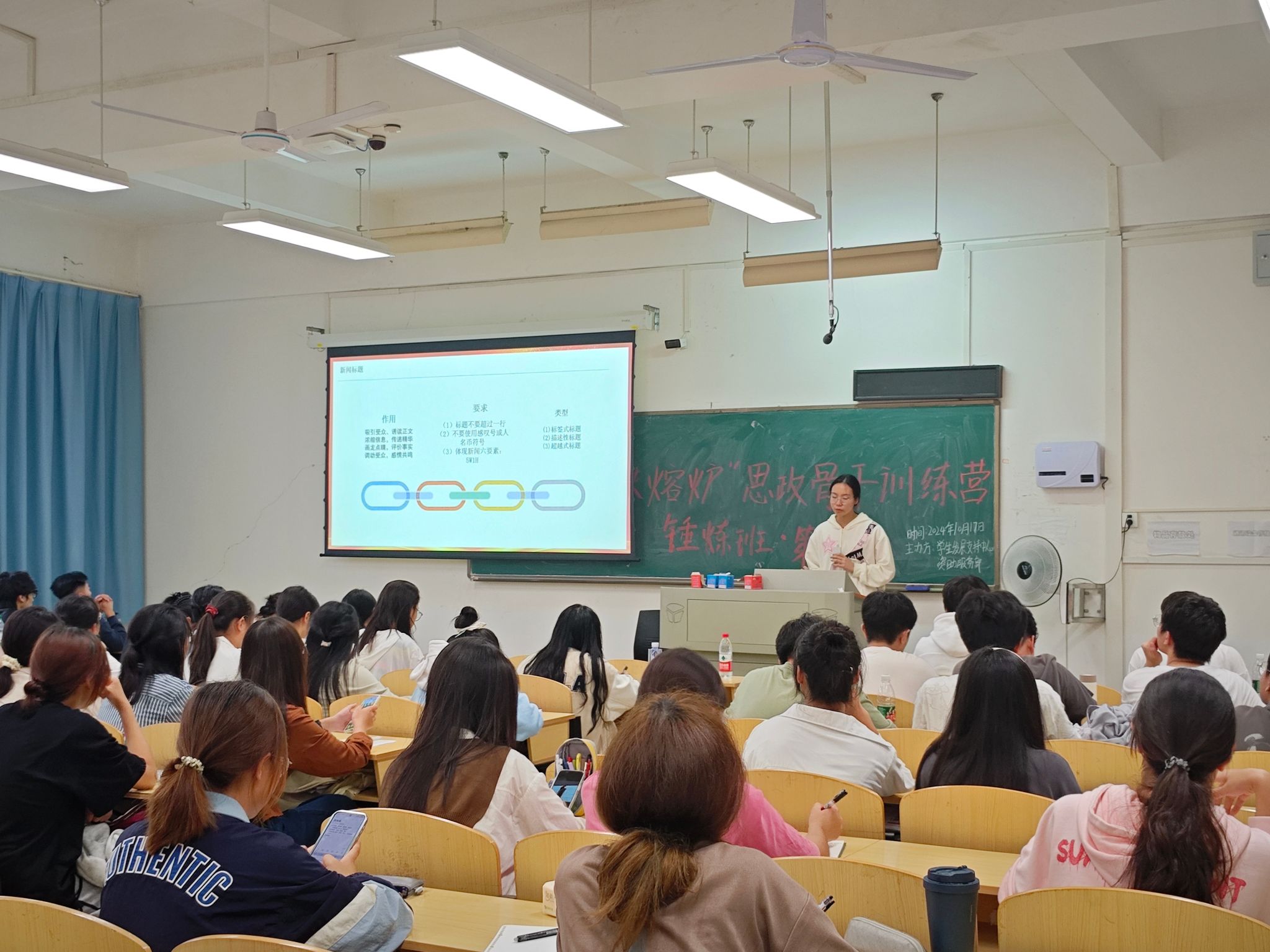 本次培训特邀我校校报记者团编辑朱佳怡担任讲师。朱佳怡凭借丰富的实践经验与专业知识,为学员们呈现了一场别具一格的学习盛宴。培训内容围绕认识新闻、写好新闻以及新闻素养三个方面展开,涵盖了新闻稿的基本结构、导语写作、主体内容构建以及新闻稿结尾处理等方面。
