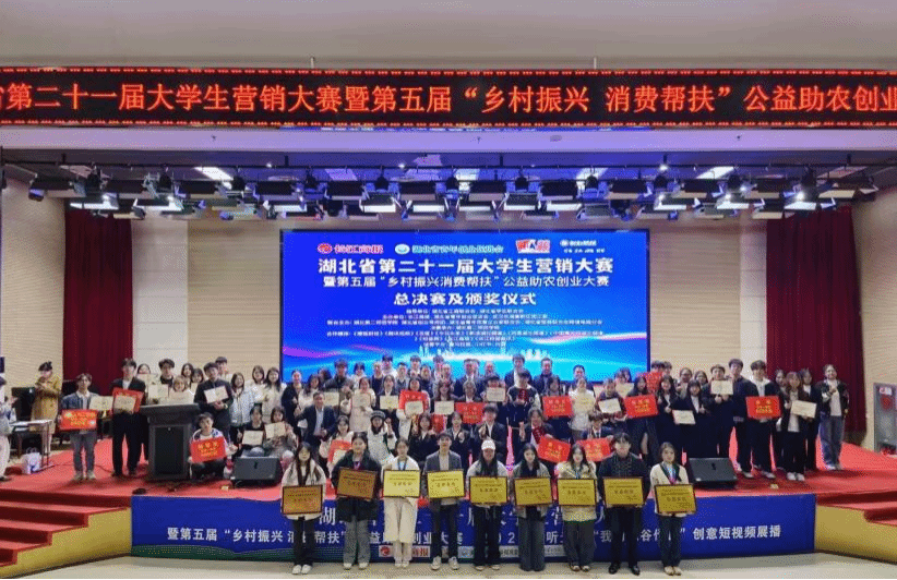 武科大网讯(通讯员陈映雪 简正城 摄影王京)11月30日,由长江商报、湖北省青年创业促进会和武汉东湖高新区团工委主办的湖北第二十一届大学生创业营销大赛暨第五届“乡村振兴消费帮扶”公益助农创业大赛总决赛及颁奖仪式在湖北第二师范学院落下帷幕。大赛中,我校的学子们大展风采,表现出色。